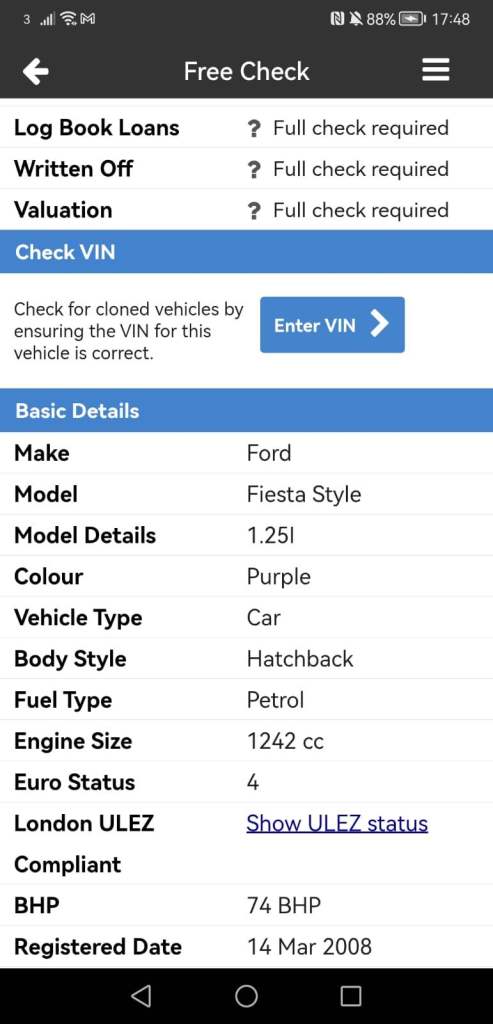 Buy the full report for guaranteed data accuracy, outstanding finance, valuation, milage check & VIN match for £9.99 (normally £19.99)