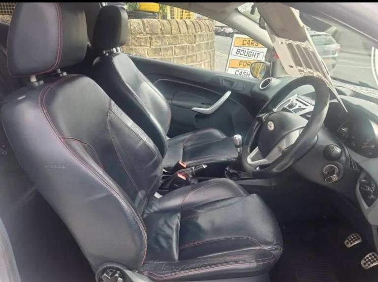 2009 59 Ford Fiesta Zetec S 1.6 Turbo Diesel 5 speed manual finished in white black alloys excellent tyres remote central locking alarm power steering cd player AUX input electric windows electric mirrors air conditioning full black leather interior clean car throughout 110000 miles mot 18th of July full mot at screen price cheap road tax part exchange always welcome Keighley Vehicle Sales located at 170 South Street Keighley BD211BB open 7 days until late call anytime View anytime