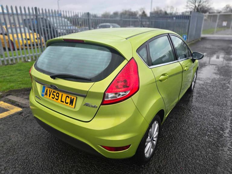 2009 59 ford fiesta 1.4 zetec 5 door in green , 2 owners ,covered 96500 miles, full service history timing belt has been changed, 2 keys, mot november , no faults, drives perfect , spec includes , front fog lights, alloy wheels, remote central locking, multifunctional steering wheel, heated front and rear screens, cd/tuner, electric mirrors, aircon, electric windows, handsfree, heated front and rear screens, and much more part ex welcome