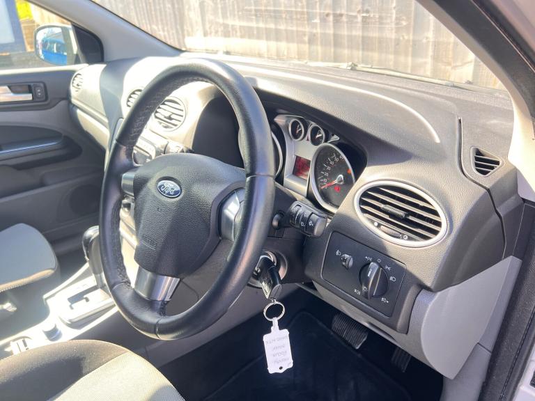 Ford Focus 1.6 Zetec Hatchback Read to drive away! - Great Service History (9 stamps) - Low mileage Automatic - 2 Keys - Low insurance group (10E) - Part Exchange Welcome - Finance Available - Extended Warranties With 5 seats and 5 doors, it is practical and spacious, making it a perfect vehicle for everyday use. Running on petrol with an automatic transmission and ULEZ compliant, it also comes with an MOT that expires on 27/03/2027 so you can be assured of its safety and roadworthiness. This model boasts features such as adjustable steering column/wheel, air-conditioning, armrest, electric windows (front), and heated front screen, ensuring both comfort and convenience for the driver and passengers. With 184 g/km emissions and 99 bhp, this Ford Focus offers a smooth and enjoyable drive, making it a great value for anyone in the market for a reliable hatchback. Features Include: , adjustable steering column/wheel, air-conditioning, armrest, electric windows (front), heated front screen, in car entertainment (radio/cd), speakers, steering wheel mounted controls (audio), upholstery cloth, air bag driver, air bag passenger, air bag side, alarm, anti-lock brakes, central door locking, centre rear seat belt, head air bags, head restraints, immobiliser, power-assisted steering, seat - isofix anchorage point, alloy wheels (16in), body coloured bumpers, mirrors external, side protection mouldings, spare wheel (space saver)
