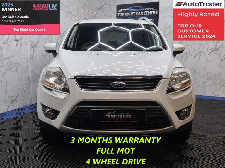 *** NIL DEPOSIT FINANCE AVAILABLE *** ***HPI CLEAR ***3 MONTHS WARRANTY AND BREAKDOWN COVER WITH THIS CAR.(0% interest 9 months payment plan for extended warranty options are available for 1 or 2 years).4 wheel drive.FULL SERVICE HISTORY. FULL MOT ON SALE. We just done the fresh service.This stunning Ford Kuga 2.0 TDCi has been sourced directly from its Previous Private Owner. Every now and again, a car comes into stock at Top Right Car Centre, that you cannot help but fall in love with.Top Spec Titanium has full leather interior, all electric windows, privacy glass, parking sensors, cruise control. Clean Car in White colour. Great comfortable family car. Well maintained body work and interior. Bullet fast response. Checked by our engineers. Professionally detailed. Good reliable runner. Price checked. We've just completed a full pre delivery inspection on the car to give you complete piece of mind. central locking key. Smooth gear box. Clean alloy wheels. Excellent condition tyres. Spare wheel. Multimedia has Bluetooth DAB RADIO CD mp3. Run with no fault strong reliable engine. Good fuel economy. First to see will buy it this well looked after car. p/x welcome. We do price our cars/van as competitively as possible and because of this we sell cars/vans very quickly. BE QUICK! MISS IT - MISS OUT. With so much variety, quality and highly rated award winner 2024 and 2025, it is no wonder we are super busy all the time. Why Buy From Top Right Car Centre?Thoroughly Inspected Cars. All our vehicles are quality-checked and HPi verified, giving you peace of mind with every purchase.Multi Award-Winning Family Business. As a trusted family-run business, we have earned awards for our customer service and expertise.Hand-Picked, Quality Cars. We carefully select only the finest cars with full service histories, so you can drive away with confidence.Test Driven for Assurance. Each car is personally test-driven by our team, ensuring it meets our high standards.Delivery Service available.