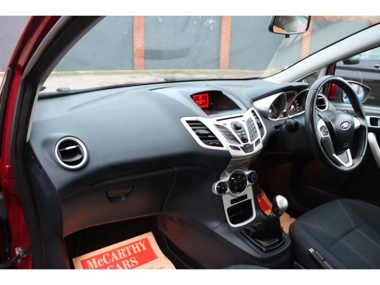 Bluetooth Handsfree Voice Control and USB,Hot Magenta metallic,Unique paint - Hot Magenta,1242 cc 1.2 litres in-line 4 engine with 71.9 mm bore 76.5 mm stroke 11.0 compression ratio double overhead cam and four valves per cylinder,12v power outlet located in front section front,42 litre 9.2 UK gallon main fuel tank main,ABS,Air conditioning,Alloy & leather multi-function steering wheel with tilt adjustment and telescopic adjustment,Alloy look trim on dashboard alloy look trim on doors and alloy & leather gearknob,Analogue dashboard,Anticorrosion warranty: 144 months Unlimited miles Unlimited km,Asymmetrically folding rear seats: bench type with space for three people; with zero electric adjustments front,Audio system with CD player that reads MP3 CDs ; radio receives AM/FM and RDS,Automatic hazard lights,Body colour power door mirrors ; heated with integrated indicator lights driver,Body colour power door mirrors ; heated with integrated indicator lights passenger,Brake assist system,Central door locking: Operated by remote Includes dead bolt,Charges: VAT [20%] = 2144.17 VED (Band D) = 95.00 FRF = 55.00 Showroom Tax = 0.00 = 0.00 = 0.00 = 0.00 = 0.00,Chrome/bright trim around side windows,Cloth and cloth seat upholstery,Computer includes average speed average fuel consumption and range for remaining fuel,Connections for auxiliary audio devices,Cup holders for front seats front seats,Data completeness: up to date pricing data up to date data for key leasing items all available specifications data up to date colour & trim data up to date option pricing data up to date option content data and incomplete incentives data,Date introduced: Model introduced 22/07/2008 and Version introduced 22/07/2008,Driver and passenger vanity mirror driver,Driver and passenger vanity mirror passenger,Drivers and passengers airbag driver,Drivers and passengers airbag passenger,Driver seat: individual type adjustable height passenger seat: individual type driver,Driver seat: individual type adjustable height passenger seat: individual type passenger,Electrically heated windscreen,Electronic brake distribution,Electronic traction control,Emissions: EU5 compliant 129 g/km CO2 (min) 129 g/km CO2 (max) 0.519 g/km carbon monoxide 0.084 g/km HC and 0.027 g/km NOx,Euro NCAP crash test results: Adult occupant: 5 Pedestrian: 3 Child occupant: 4 Euro NCAP,External dimensions: 3950mm long 1722mm wide 1481mm high 2489mm wheelbase 1493mm front track 1460mm rear track 10200mm turning circle (kerb to kerb) 155.5 inches long 67.8 inches wide 58.3 inches high 98.0 inch wheelbase 58.8 inch front track 57.5 inch rear track and 33.5 foot turning circle (kerb to kerb),External temperature,Five door hatchback ; Platform code: B2 Right hand drive,Five seats configured 2+3,Floor console floor,Four speakers,Front and rear tyres: 15 inch diameter 195mm wide 50% profile H rated ; Load index: 82 (official data) front,Front and rear tyres: 15 inch diameter 195mm wide 50% profile H rated ; Load index: 82 (official data) rear,Front and rear wheels: 15 inch alloy rims ; width: 6.0 inches front,Front and rear wheels: 15 inch alloy rims ; width: 6.0 inches rear,Front electric windows with one-touch on one window front,Front fog lights,Front hinged drivers door rear door on drivers side front passenger door and rear door on passenger side driver,Front hinged drivers door rear door on drivers side front passenger door and rear door on passenger side passenger,Front hinged drivers door rear door on drivers side front passenger door and rear door on passenger side rear driver,Front hinged drivers door rear door on drivers side front passenger door and rear door on passenger side rear passenger,Front reading lights front,Front side airbag includes head protection front,Front-wheel drive,Fuel consumption: 7.4 l/100km (urban) 4.5 l/100km (country/highway) 5.6 l/100km (combined) 32 mpg (urban US) 52 mpg (country/highway US) 42 mpg (combined US) 13.5 km/l (urban) 22.2 km/l (country/.For sale is a stunning 2012 Ford 1.25 Zetec Hatchback in a vibrant red colour. This petrol manual car has only done 50,000 miles and is in excellent condition. With a top speed of 104mph and an acceleration of 13.3 seconds from 0-60mph, this car is both efficient and fun to drive.The Ford 1.25 Zetec comes with a range of standard features including 15in alloy wheels, anti-lock brakes, electric power assisted steering, front fog lights, and more. The interior is stylish and comfortable, with cloth upholstery, leather gear knob, and manual air-conditioning.Optional specifications include Bluetooth handsfree, voice control, USB connectivity, and a unique Hot Magenta metallic paint. The car also boasts a 1.3L engine with 81bhp, delivering a fuel economy of 49.6mpg.This Ford 1.25 Zetec is perfect for anyone looking for a reliable and efficient hatchback. Don't miss out on this fantastic opportunity to own a quality vehicle. Contact us today to arrange a test drive.Every Vehicle is Subjected To a