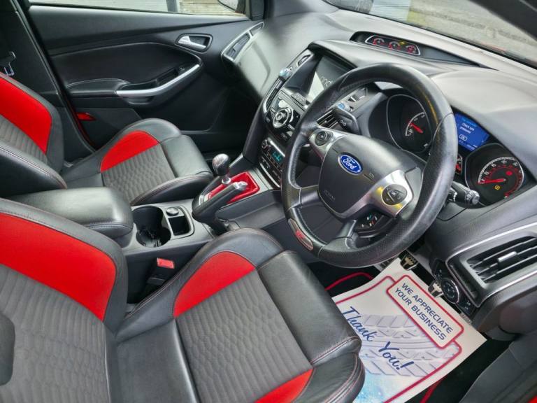 This 2012 Ford Focus T ST-2 presents an exceptional opportunity with its remarkably low mileage of just 69,090 miles for its age. This particular model boasts a powerful 2.0L petrol engine and comes with a 6 month warranty for your peace of mind. Its provenance is further strengthened by a full service history, with the last service completed on 18 November 2025 at 68,124 miles. Notable features include automatic headlights, which conveniently switch on when needed, and DEATC dual zone electronic automatic temperature control, allowing for personalised climate settings for both driver and passenger. The performance of this Ford Focus T ST-2 is truly a highlight, with an impressive 0-60mph acceleration time of just 6.5 seconds. This brisk acceleration indicates a superior driving experience compared to many other vehicles in its class. The ST-2 trim level ensures a well equipped and engaging drive, making this Focus a compelling choice for those seeking both performance and practicality..Climate Control, Half Leather Trim, Modified Part(s) - SPACERS ON WHEELS, Modified Part(s) - EXHAUST, Modified Part(s) - VEHICLE LOWERED, Privacy Glass, 12V Power Socket - Additional Front, 12V Power Socket - Additional Rear, 12V Power Socket - Front, 18in Alloy Wheels, 4.2in TFT Display, ABS - Anti-lock Braking System, AUX Connection, Airbags - Curtain, Airbags - Front Passenger, Airbags - Side Impact, Armrest - Centre Console, Automatic Dimming Rear View Mirror, Automatic Rain Sensing Wipers, Body Colour Side Skirts, CD storage, Centre Console with open Stowage Bins, DAB Digital Radio, DDS - Deflation Detection System, DEATC - Dual-Zone Electronic Automatic Temperature Control, Drivers Airbag, EBA - Emergency Brake Assist, EBD - Electronic Brakeforce Distribution, EPAS - Electric Power Assisted Steering, ESP - Electronic Stability Programme, Emergency Brake Lights, Ford Easy-Fuel Capless Refuelling System, Ford Power Engine Start-Stop Button, Ford SYNC, Front Fog Lights, Front Grille - Chrome, Headlights - Automatic, Heated Front Windscreen, Heated Washer Jets, Heated Windscreen, IPS - Intelligent Protection System, LED Daytime Running Lights, Locking Wheel Nuts, Mini Steel Spare Wheel, Open Stowage Bins, Rear Spoiler - Body Colour, Remote Central Locking, ST Front Door Scuff Plates, ST Full Body Styling Kit, Seats - Drivers Power Height and Fore-Aft Adjustment, Seats - Front Recaro Sports, Seats - ISOFIX Mounting Brackets for Child Seats, Sony Radio-CD, Sports tuned suspension, Steering Wheel - 4 Spoke Leather Trimmed, TVC - Torque Vectoring Control, Thatcham Category 1 Alarm, Traction Control - TC, Trip Computer, USB Connection, Unique ST Floor Mats - Front and Rear, Unique ST Instrument Cluster Binnacle, Unique ST Leather Gearshift Knob, Unique ST Rear Spoiler, Unique ST pedals, Voice Control - Audio, Z-Shape Handbrake