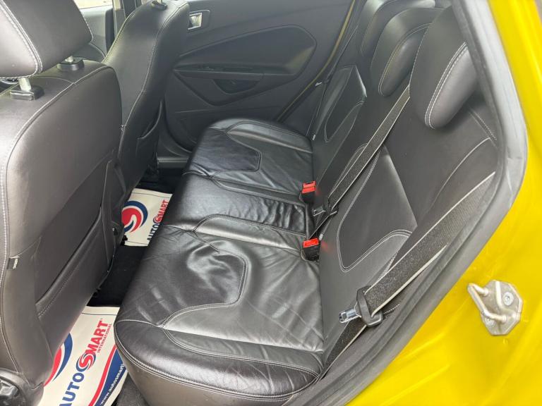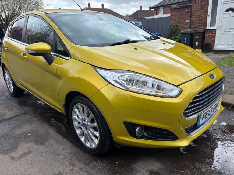 Ford fiesta 1.0 titanium x petrol manual 13 2013 1 previous owner previously owned since 2016 5 doors metallic hot mustard colour coded bumpers mirrors rear spoiler 101000 full service history 13x service stamps miles power steering push button start stop fogs abs air con heated front screen remote central locking 4x electric windows remote retractable electric mirrors remote Sony cd phone Bluetooth park pilot aux usb stereo full heated leather interior alloys with locking wheel nut auto adaptive headlights cruise privacy glass airbags rev counter £20 a year road tax 12 months mot