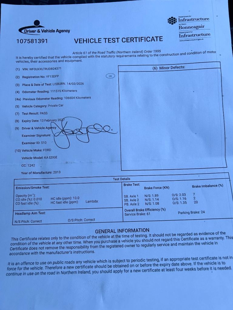 Here I have for sale my Ford Ka Edge 1.2 petrol, full year mot from 14/02/2026, timing kit was changed at 86,000 miles, well looked after wee car and serviced regularly! Car in fantastic condition inside and out!Everything working as it should. Ideal first car for someone starting out. Cheap tax and insurance.