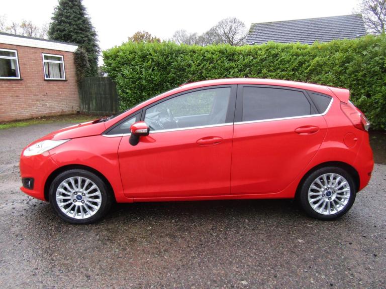 *LOOK WHAT YOU GET INCLUDED IN THE PRICE***82 POINT RAC CHECK PLUS A NEW MOT AND SERVICE ALL INLCUDED TOO** AMAZING VALUE**RAC WARRANTY AND 1 YEAR BREAKDOWN COVER INCLUDED!! LOW RATE FINANCE AVAILABLE,This 2014 Ford Fiesta Titanium is a remarkable find, boasting an exceptionally low mileage of just 31,000 miles for its age. As a T Titanium model, it comes equipped with the desirable Titanium trim, powered by an efficient 1.0 litre petrol engine. This particular Fiesta also features automatic headlights, which conveniently switch on when needed, and Electronic Automatic Temperature Control for effortless climate control, ensuring a comfortable cabin environment in all conditions.The fuel economy of this Ford Fiesta is a significant highlight, achieving an impressive 66 miles per gallon, which is considerably better than many other vehicles in its class. Furthermore, its low CO2 emissions contribute to a more environmentally friendly driving experience. These factors combined make this Fiesta a sensible and economical choice for any driver.