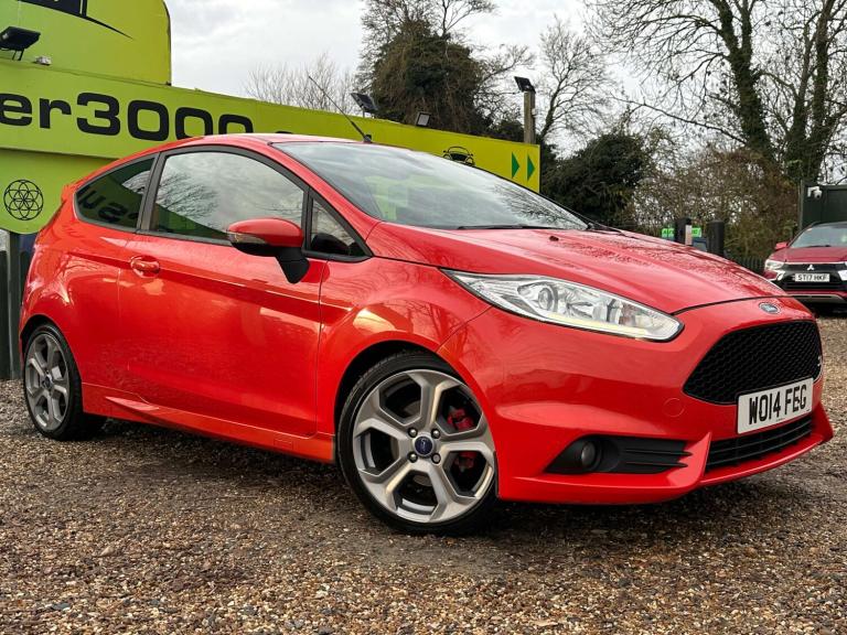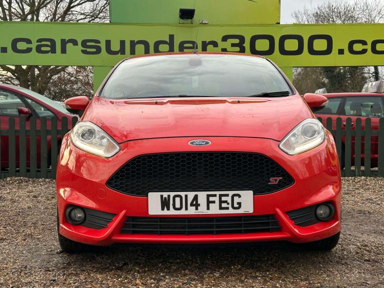 ULEZ / ST3 / MOLTEN ORANGE / HEATED RECARO SEATS / SONY DAB RADIO / FORD SYNC / 1 FORMER KEEPERThis 2014 Ford Fiesta ST-3 presents a remarkable opportunity with its exceptionally low mileage of just 75,000 miles for a vehicle of its age. This particular ST-3 variant is powered by a dynamic 1.6L petrol engine, offering an exhilarating driving experience. Comfort is assured with heated driver and passenger seats, while the automatic headlights provide convenience and enhanced visibility. The Electronic Automatic Temperature Control ensures a pleasant cabin environment regardless of the weather, and the Ford Keyfree System allows for effortless keyless entry and starting with the Ford Power Starter Button.The performance of this Fiesta ST-3 is truly a standout feature, evidenced by its impressive 0-62mph acceleration time of just 6.9 seconds. This brisk acceleration indicates a level of performance that surpasses many other vehicles in its class. Combined with its comprehensive list of desirable features and its well preserved provenance, this Ford Fiesta ST-3 offers a compelling package for any discerning driver.We are a local family run business in the process of establishing ourselves as national leaders in the affordable used car market, we accept most debit cards and outside finance deals. Cars Under 3000 won the Autotrader Retailer Awards 2025, we also have several highly rated Autotrader accolades portraying our attention to detail and customer care we provide. With 200 cars in stock between £1,000 & £10,000, there's something for everybody, so come on down to one our 2 local dealerships in Rayleigh, Essex. All retail vehicles come with a long MOT and 3 months warranty upgradable & extendable at point of sale. We have a specialist in-house finance team who can help you spread your costs over several years if needed. We can even help those with poor credit profiles. With our focus on prioritising customer experience and amazing service at affordable prices, we don't believe anybody does it quite like us. Don't take our word for it, check out our 5,000+ 5 STAR reviews and recommendations across the web. Thanks for looking and see you soon. The Cars Under 3000 Team!!!