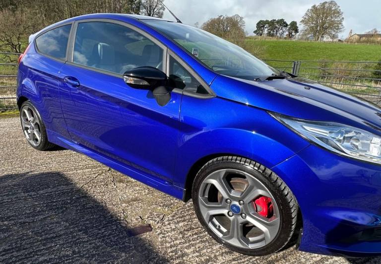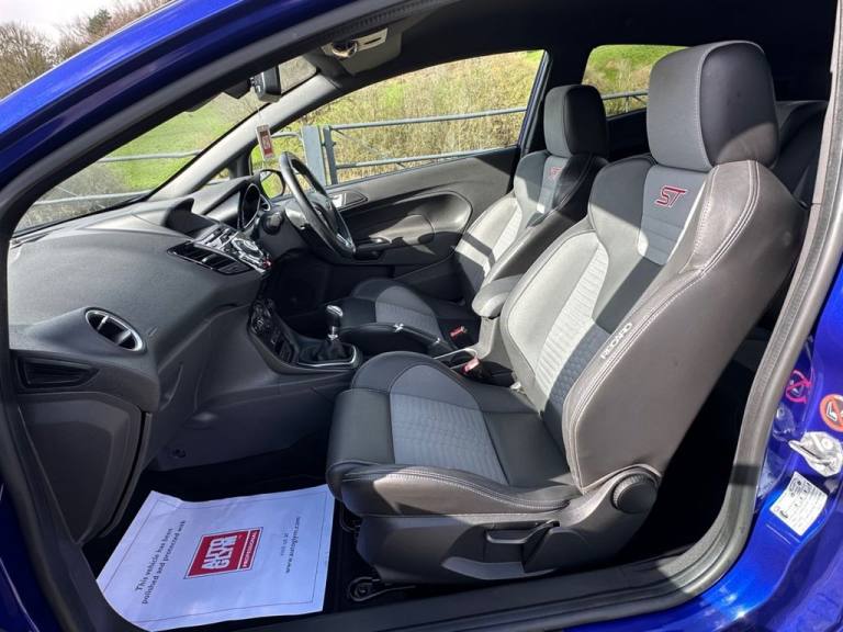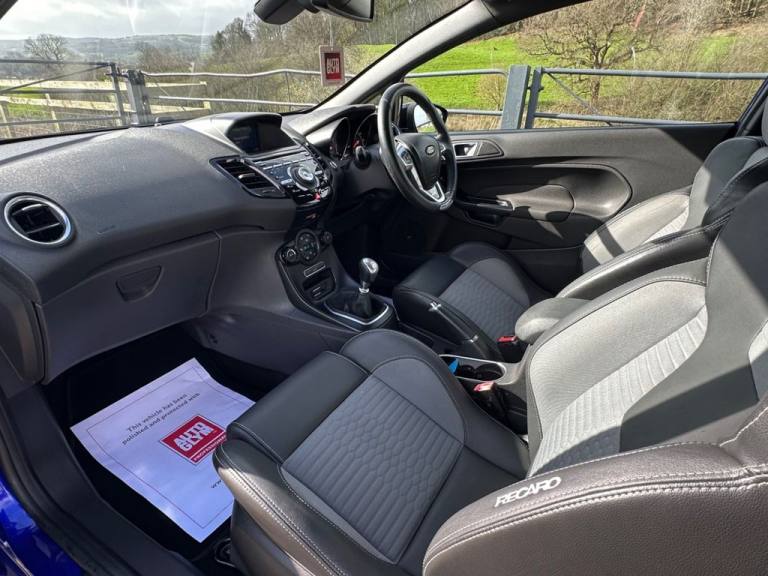 KTS Motor Company are proud to present this stunning 2014 Ford Fiesta ST3 finished in Spirit blue with black interior. The car has had only 2 owners from new with the last owning having had the car since 2016. It comes with service history with 2 keys. The condition is stunning with the bodywork having no major marks, dents, scuffs or scratches. The interior is free from any excessive wear or lingering odours. The car runs and drives with no known faults and everything works as it should. Great specification including cruise control, heated seats, DAB radio, Auto lights plus more. It is clear from the condition how well this vehicle has been maintained. Good service history and has been serviced less than 100 miles ago by ourselves. It has also just had a new clutch. A fresh MOT will be provided with no advisories. A real genuine example throughout that will be a credit to its next keeper. These cars do not come up often. Video walkaround on request and £250 will secure any vehicle. KTS Motor Company is a family run business in North Wales. We have a fantastic reputation within our local area and strive to deliver outstanding customer service. All our vehicles come fully inspected, serviced if required and come supplied with a 12 Month MOT. All vehicles will have a 3 Months warranty provided by Warranty wise. Selected cars are kept onsite however please ring ahead prior to viewing to avoid disappointment. The majority of our cars are stored off site in a secure compound and will be brought to our showroom for a viewing. Please make an appointment to view to avoid disappointment. Rest assured you are buying from a well-established dealership with years of combined experience. Buy with confidence. For anymore information regarding any vehicle please call us on 01352961328.HEATED RECARO SEATS , EXCELLENT CONDITION THROUGHOUT , ONLY 2 OWNERS FROM NEW , FINANCE AVAILABLE FROM 9.9% APR , BRAND NEW CLUTCH , 17in Alloy Wheels - 5-Spoke - Metallic Grey, Spirit Blue, 12V Power Socket - Front, 17in Alloy Wheels - ST, 4.2in TFT Display, 5in Colour Screen, ABS - Anti-lock Braking System, Airbags - Curtain, Airbags - Driver Side Knee, Airbags - Front Passenger, Airbags - Head and Thorax, Airbags - Passenger Deactivation, Automatic Dimming Rear View Mirror, Automatic Headlights - Rain Sensing Wipers - Auto Dimming Rear View Mirror, Automatic Rain Sensing Wipers, Body Colour Exterior Mirrors, Brake Warning Lights - Automatic Flashing of Brake Lights Under Heavy Braking, Bumpers - Front and Rear - Body Colour, Centre Console with Trinket Tray 2 Cup Holders and Large Stowage Bin, Convenience Pack, Cruise Control, DDS - Deflation Detection System, Door Handles - Body Colour, Door Mirrors - Power-Foldable with Puddle Lights, Drivers Airbag, EATC - Electronic Automatic Temperature Control - Climate Control, EBA - Emergency Brake Assist, EBD - Electronic Brakeforce Distribution, ECOmode, EPAS - Electric Power Assisted Steering, ESP - Electronic Stability Programme, Electric Windows - Front with One Touch Lowering Drivers, Emergency Assistance, Emergency Brake Warning - Automatic Hazard Warning Lights, Engine Immobiliser, Ford Easy Fuel Capless Refuelling System with Misfuel Inhibitor, Ford Keyfree System - Keyless Entry with Ford Power Starter Button, Ford Power Starter Button, Ford SYNC, Front Fog Lights, Front Upper Grille Insert - Black Mesh, Gear Knob - Leather, Gearshift Indicator Light, Head Restraints - Rear 2-Way Adjustment, Headlights - Automatic, Headlights - Follow Me Home, Headlights - Halogen Projector with Chrome Bezel, Heated Driver and Passenger Seats, Heated Front Windscreen, High-Mounted Rear Brake Light, Hill Start Assist, IPS - Intelligent Protection System, Keyless Start, LED Ambient Courtesy Lighting, LED Daytime Running Lights, Loadspace Floor Carpet, Locking Wheel Nuts, Matrix Display, MyKey, Rake and Reach Steering Adjustable, Rear Privacy Glass, Rear Spoiler - Body Colour, Removable Rear Parcel Shelf, ST Front Door Scuff Plates, ST Full Body Styling Kit, SYNC connectivity, Seats - 60-40 Split Folding Back and Fixed Cushion, Seats - Drivers 4-Way Adjustment, Seats - Front Recaro Sports, Seats - ISOFIX Mounting Brackets for Child Seats, Side Skirts, Sony CD-Radio Player-MP3 Compatibility, Sony DAB Digital Radio, Sony Na