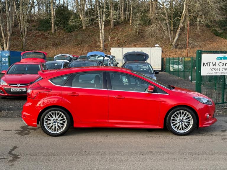 2014 Ford Focus Zetec S 1.6 TDCi with 88k miles MOT till January 2027 with no advisories and just been serviced supplied with 3 months warranty HPI clear finance available nationwide delivery available part exchange welcome and reserve options from £99. A sporty and well equipped hatchback that looks great and drives superbly featuring 17 inch 5x2 spoke alloy wheels, full Zetec S body styling kit, sports suspension, rear spoiler, Ford DAB audio system with SYNC, Bluetooth audio streaming, USB connection, air conditioning, keyless start, sports front seats with red stitching, colour TFT instrument display, front fog lights, heated electric door mirrors, torque vectoring control, tyre pressure monitoring system and Thatcham category 1 alarm. A smart economical and great driving hatchback with strong performance and low running costs ready to drive away today.