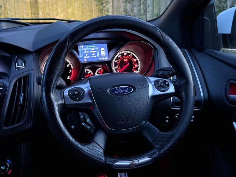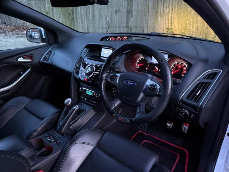 *VIEWING BY APPOINTMENT ONLY*AX1 Autos are delighted to offer this lovely Ford Focus 2.0T EcoBoost ST-3 Hatchback with manual transmission, finished in a beautiful white. This vehicle drives very well and comes with 12 months MOT. The car has just been serviced and benefits from a great service history.This vehicles special extras include: drivers electric seat adjustment, rear spoiler, black leather heated ST seats, speed limiter, cruise control, hill start assist, auto stop/start, push-button start, front and rear parking sensors, daytime running lights, front electric windows, onboard computer, radio, satellite navigation, automatic lights, electronic headlight adjustment, electrically adjustable side mirrors, USB input, AUX input, multifunction steering wheel, and air conditioning (not your average specification).All our cars come with a 3-month warranty, which can be extended to 12 months at an additional cost. Part exchange is welcome, and delivery is available. Please call today for a great drive-away deal. Video available upon request.