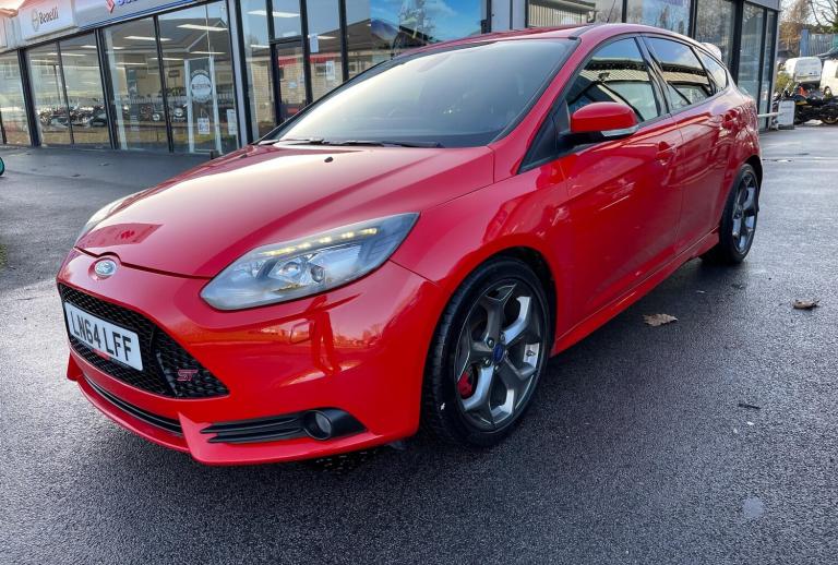 Boasting exceptionally low mileage for its age, this 2014 Ford Focus T ST-3 presents a remarkable find. With only 33,656 miles on the clock and a full service history culminating in a recent service on 05/01/2026, this vehicle has been meticulously maintained. It comes with a clear vehicle history check and a 3 month warranty for your peace of mind, alongside 12 months MOT provided on purchase. The ST-3 trim level ensures a premium experience, featuring a potent 2.0L petrol engine ready to deliver exhilarating performance.Experience the thrill of rapid acceleration, reaching 0-62mph in just 6.5 seconds, a testament to its sporting pedigree and a clear indicator of its superior performance compared to similar models. This Focus ST-3 also offers practicality with its large boot space, perfect for all your needs. Comfort and convenience are further enhanced by keyless entry, rear parking sensors, heated driver and passenger seats, and advanced Bi-Xenon headlights. Stay connected on the go with Bluetooth handsfree and voice control, making every journey more enjoyable and effortless.