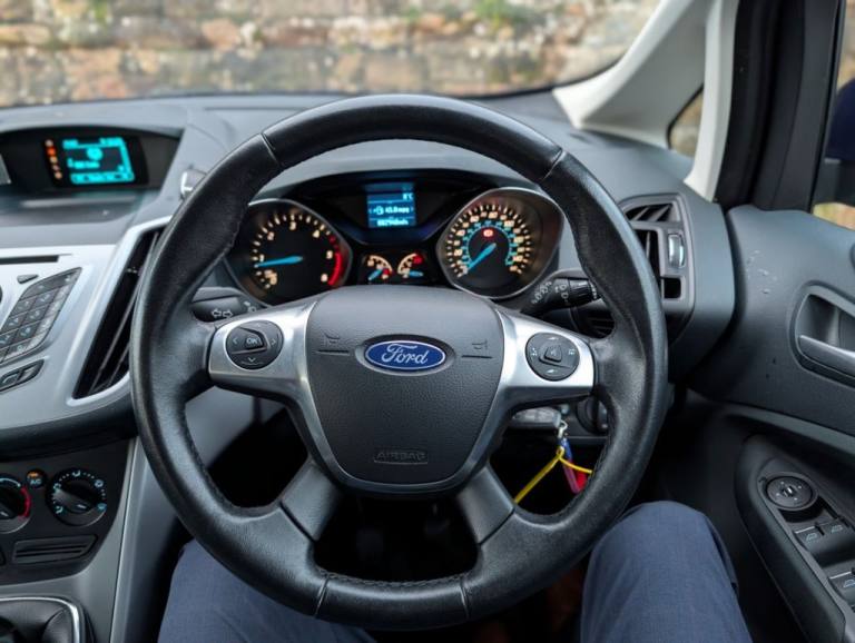 Desirable 7 seater family hatchback presented in Metallic blue Hugely popular 1.6 TDCi engine returning 115BHP and incredible miles per gallon The Ford Grand C-max is desirable and family friendly with a comfortable and spacious interior and desirable looks. ONLINE PRICES - SHOWROOM SERVICE.Deep Impact Blue, 16in Alloy Wheels - 5 Spoke - Y Design, Bluetooth Hands-free Phone, Electric Windows - Global Opening-Closin, 7 Seats, Deep Impact Blue, 12V Power Socket - Additional Rear, 12V Power Socket - Front, 16in Alloy Wheels - 5 Spoke - Y Design, ABS - Anti-lock Braking System, AUX Input Socket, Air Conditioning - Manual, Airbag - Front Passenger, Airbags - Driver, Airbags - Front and 2nd Row Curtain, Airbags - Side Impact, Alarm - Thatcham Category 1 with Volume Sensing and Perimeter, Anti-roll protection, Bluetooth Hands-free Phone, Body Colour Exterior Mirrors, Brake Warning Lights - Automatic Flashing of Brake Lights Under Heavy Braking, CD storage, Centre Console - Sliding Armrest, Courtesy Light - LED Overhead and Load Compartment, Door Mirrors - Electrically Operated and Heated, Door Mirrors with Integrated Indicators, Door lever front - Satin Chrome finish, Doors - Sliding Rear Passengers, Drivers Seat Lumbar Support, EBA - Emergency Brake Assist, EBD - Electronic Brakeforce Distribution, ESP - Electronic Stability Programme, Electric Windows - Front and Rear with One Touch, Electric Windows - Global Opening-Closing, Emergency Assistance, Extended Integrated Control Panel, Ford AM-FM CD Audio System, Ford DAB Audio System, Ford Easy Fuel System, Ford Easy-Fuel Capless Refuelling System, Ford SYNC, Front Fog Lights, Front Seat - Passengers Manual Fore-Aft Adjustment, Front suspension - Independent with MacPherson Struts, Fuel Computer, Gearshift Knob - Leather, Heated Front Windscreen, Locking Wheel Nuts, Mid MFD - 3.5in Dot Matrix, Outside temperature thermometer, Parking Sensor - Rear, Power Rear Door Child Locks, Power Steering, Rear Seats - 2nd Row Easy Entry Tip and Slide System, Rear Seats - Two 3rd Row Individual Fold Flat Seats with Height Adjustable Head Restraints, Remote Central Locking, Seats - Drivers Manual Height and Fore-Aft Adjustment, Steering Column - Rake and Reach Adjustment, Steering Wheel - 4 Spoke Leather Trimmed, Steering Wheel - Multifunction, Stowage Boxes - Two underneath rear passengers foot area, Stowage Boxes - Two underneath rear passengers foot area in 2nd row, Tonneau Cover, Traction Control - TC, Tyre Repair Kit, USB Connection - iPod Connectivity, Voice Control - Audio
