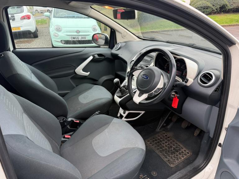 NEW STOCK AWAITING PREP- This 2014 Ford Ka 1.2 Zetec Hatchback 3dr Petrol Manual Euro 5 (s/s) (69 ps) is a fantastic option for anyone in the market for a reliable, fuel-efficient vehicle. With only 57257 miles on the clock, this hatchback comes with a 1.2L petrol engine and is ULEZ compliant, making it a great choice for city driving. The MOT doesn't expire until 12/10/2026, giving you peace of mind for the years to come. It has 4 seats and 3 doors, making it a practical choice for everyday use. The car comes with features such as 12V Power Socket - Front, AUX Connection, CD Radio with MP3 and Aux in Connector, Six Radio Speakers, and 15in Alloy Wheels - Multispoke, as well as body-coloured bumpers, adding to its overall appeal. Don't miss out on the opportunity to own this well-maintained Ford Ka. Features Include: , 12v power socket - front, aux connection, cd radio with mp3 and aux in connector - six radio speakers, 15in alloy wheels - multispoke, body colour bumpers, door handles - body colour, door mirrors - power operated with body colour housings heated, electrically-operated front windows with one touch drivers, front towing hook, headlights - manual control, heated front windscreen, rear privacy glass, tailgate handle - body colour, tyre mobility kit, windscreen - heated with heated washer jets, abs - anti-lock braking system, airbags - front passenger, airbags - passenger deactivation, driver seat belt minder, drivers airbag, eba - emergency brake assist, ebd - electronic brakeforce distribution, emergency brake warning, engine immobiliser, front seat belts with pre-tensioners, immobiliser - safeguard passive anti-theft system - pats - insurance-approved category 2 immobiliser, manual locking doors, rear seats - isofix fittings, rear seat - head restraints, remote central locking, air conditioning - manual, flexible accessory holder - pearl white, floor mats - front and rear - velour, floor mounted centre console - with single cup holder, front ashtray and cigar lighter, front dome light, front seatback map pockets - driver and passenger, front seats - driver tipping seat with easy entry - driver memory function, gearshift, high series analogue cluster, loadspace compartment light, passengers seat manual 2-way adjustment, rear seat - 50-50 split rear seat, removable rear parcel shelf, seats - drivers 4-way adjustment, steering wheel - leather-trimmed, steering column - rake adjustable, stowage box - front passenger underseat area, sunvisor -