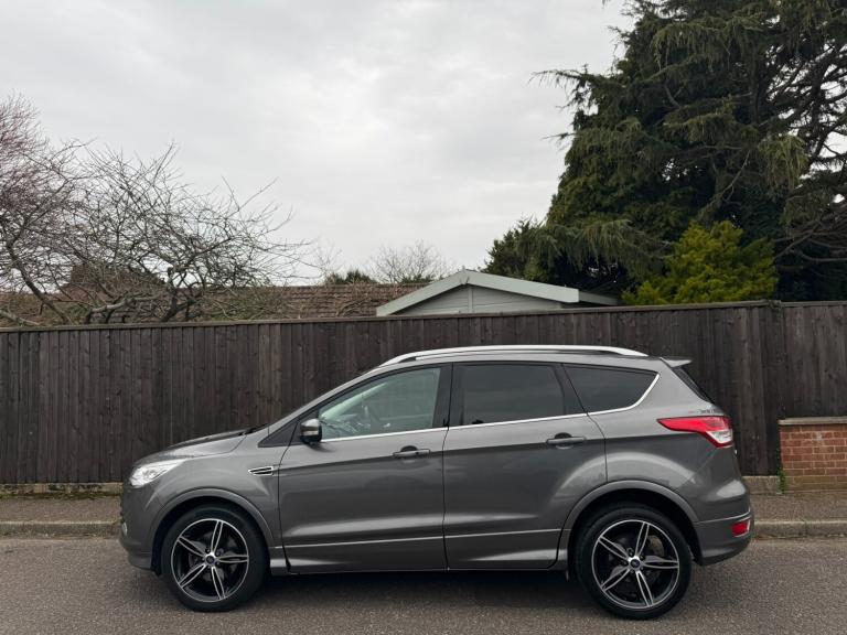 01/03/2014 Ford Kuga 2.0 TDCi Titanium 4x4 Automatic 5 Door Hatchback finished in Grey.This is a fantastic example of the highly desirable Ford Kuga Titanium automatic, presented in good condition throughout and having covered just 60,000 miles from new. The car has clearly been very well looked after, benefiting from only one former keeper and the same lady owner since 2015. It drives extremely well with a smooth automatic gearbox and the confidence of intelligent four wheel drive, making it a superb all round SUV whether for family use, commuting or longer journeys.The vehicle comes with a full and up to date service history record consisting of 12 service stamps along with supporting maintenance bills, with the most recent service carried out at 55,000 miles. For additional peace of mind the cam belt and water pump were replaced on 14/02/2024 at 53,000 miles. It will also be supplied with a brand new MOT ready for its next owner. The car is 100% HPI clear and comes complete with two remote key fobs.This Kuga benefits from a very high specification Titanium trim level and is packed with desirable features. The interior is finished with heated leather trim and electric seats, complemented by a large panoramic sunroof that fills the cabin with natural light. Technology includes satellite navigation, voice controlled Bluetooth connectivity, cruise control and driver assist features including lane assist and park assist. Parking is made easy with both front and rear parking sensors while the electric tailgate adds everyday convenience. Comfort and practicality are enhanced further with dual zone climate control, air conditioning, heated front and rear screens, electric folding mirrors, rear privacy glass, automatic headlights and wipers, electric windows, keyless entry and start, powered steering and remote central locking.Externally the car sits on professionally refurbished diamond cut alloy wheels which really enhance the overall appearance of the vehicle. The Kugas strong road presence, excellent driving position and refined diesel engine make it one of the most popular SUVs in its class.This is a genuine low mileage, high specification Kuga Titanium automatic with excellent history and a recent cam belt replacement, making it a superb choice for anyone searching for a well maintained and reliable SUV. It truly ticks all the boxes when looking for your next used car and viewings are highly recommended.Supplied by Colebrook and Sons Ltd, 130 Stourvale Road, Southbourne, Bournemouth, BH6 5HF. Part exchange is welcome and competitive prices are paid. Please see our outstanding 4.8 Google rating with over 380 reviews. We are a trusted AA and Trading Standards approved dealership.Extended AA warranty plans are available for added peace of mind. Nationwide delivery is available and every vehicle comes with free 12 months AA basic breakdown cover, with the option to upgrade. Finance can be arranged and 5 days fully comprehensive drive away insurance is available for £44.99, arranged by the AA and supplied by Tempcover, subject to terms and conditions.Please call Colebrook and Sons for further information.