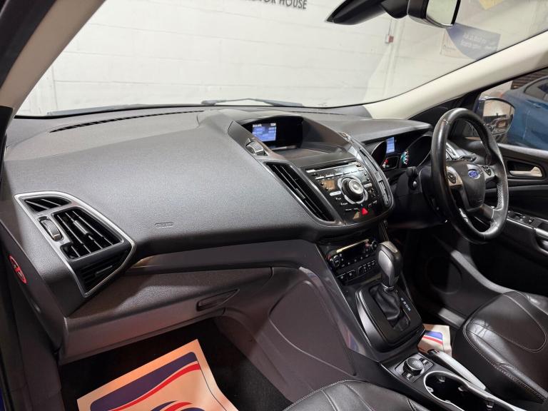 FINANCE AVAILABLE, TITANIUM X MODEL, PANORAMIC ROOF, LEATHER, PARKING SENSORS WITH ONSCREEN DISPLAY, HAS 2 KEYS, SERVICE HISTORY, CRUISE CONTROL, ELECTRIC DOOR MIRRORS AND WINDOWS, AUTOMATIC, LOW LOW MILEAGE CAR, This 2014 Ford Kuga TDCi Titanium X presents an exceptional opportunity with its remarkably low mileage of just 29,000 miles. This Four Wheel Drive model boasts a powerful 2.0L Diesel engine and is finished in the desirable Titanium X trim. It comes equipped with a stunning Panorama Roof, including a fixed panoramic sunroof, and Bi-Xenon headlights for superior visibility. Inside, you'll find dual zone electronic automatic air conditioning, Bluetooth handsfree with voice control, and heated driver and passenger seats, ensuring comfort and convenience on every journey.The inclusion of these premium features, such as the expansive Panorama Roof and advanced Bi-Xenon headlights, elevates this Kuga above many others in its class. The dual zone climate control allows for personalised comfort for both front occupants, while the Bluetooth system keeps you connected safely. Combined with the very low mileage for a 2014 vehicle, this Ford Kuga TDCi Titanium X offers a compelling package of style, comfort, and capability.