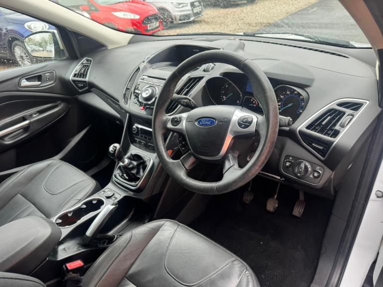 This 2014 Ford Kuga 2.0 TDCi Titanium X SUV with 120000 miles on the clock is a reliable and spacious diesel car, perfect for families or long journeys. It seats 5 people across 5 doors and will come with 12 months mot , The Euro 5 engine delivers 140ps and is coupled with a manual 2WD transmission, providing great fuel efficiency and a smooth drive. The exterior features 18in Alloy Wheels, Body Colour Exterior Mirrors and Door Handles, as well as Aluminium Door Lever and Electrically Operated and Heated Door Mirrors. Whether for daily commuting or road trips, this Ford Kuga offers both comfort and practicality, making it a fantastic option for anyone in need of a reliable SUV , electric tailgate , pan roof , heated leather , warranty , px and car , van , bike , finance available, delivery available, give us a call today to see how we can help get you into your new car Features Include: , 18in alloy wheels - 5x2 spoke, body colour exterior mirrors, door handles - body colour, door lever - aluminium, door mirrors - electrically operated and heated, door mirrors - puddle lights, door mirrors with integrated indicators, electric windows - front and rear with one touch, front upper grille - high-gloss black with chrome bar, heated front windscreen, heated washer jets, locking wheel nuts, panorama roof, rear spoiler - body colour, spare wheel - mini steel, tinted glass - green, twin exhaust outlet, 4.2in tft display, aux connection, audible text messaging, bluetooth handsfree and voice control, emergency assistance, ford sync, portable audio device connector, sony cd-radio player-mp3 compatibility, sony dab digital radio, speakers - x8, two 12v power socket, usb connection, usb connection - ipod connectivity, abs - anti-lock braking system, airbags - drivers knee, airbags - front passenger, airbags - front and 2nd row curtain, airbags - side impact, alarm - thatcham category 1 with volume sensing and perimeter, bounce-back sensors, drivers airbag, eba - emergency brake assist, ebd - electronic brakeforce distribution, esp - electronic stability programme, emergency brake warning, ford easy-fuel capless refuelling system, hla - hill launch assist, ips - intelligent protection system, isofix, rsc - roll stability control, remote central locking, tsc - trailer stability programme, tvc - torque vectoring control, traction control - tc, air conditioning - dual zone electronic automatic temperature control, automatic dimming rear view mirror, automatic rain sensing