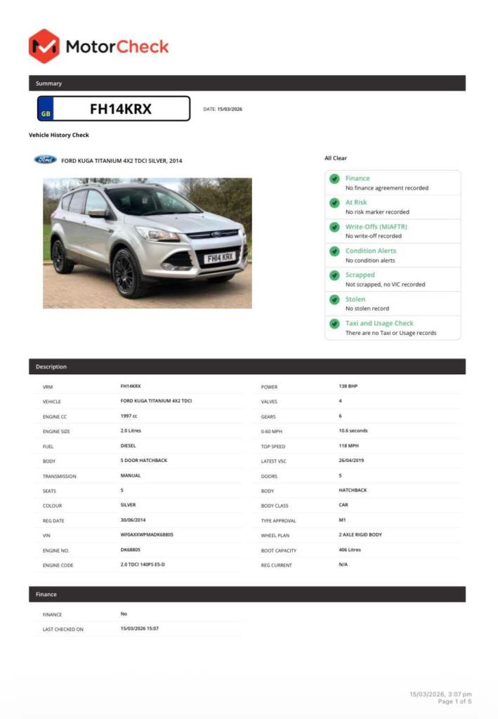2014 FORD KUGA TITANIUM 2.0 TDCi 2WD FULL FORD SERVICE HISTORY LONG MOT 2 KEYS