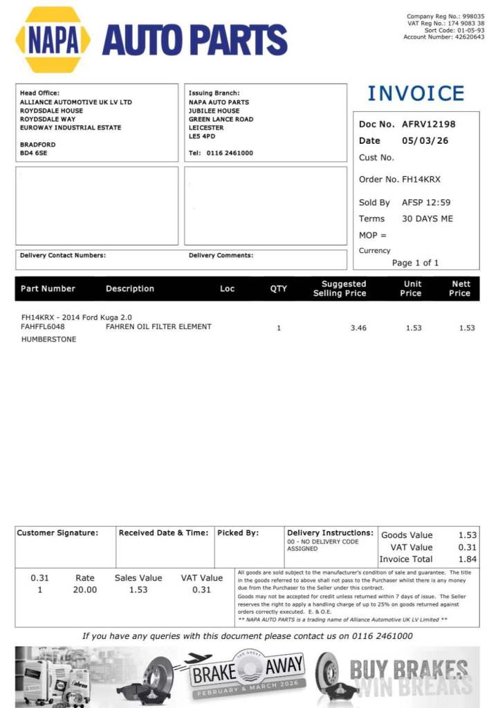 - Service / NSF Lower Suspension Arm / Wheel Alignment @ 93,582 Miles By Shepshed Ford