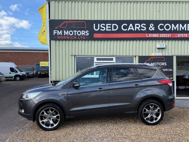 JUST ARRIVED WHAT A LOVELY FORD KUGA 2.0 TDCi Titanium SUV 5dr Diesel Manual 2WD Euro 6 (s/s) (150 ps) FSH 2 KEYS, HPI CLEAR, FINANCE AVAILABLE, LOW CREDIT SCORE! WE MAY STILL BE ABLE TO HELP , EXCELLENT EXTENDET AA WARRANTY OPTION, 12 MONTHS AA BREAKDOWN COVER INCLUDED DOMESTIC USE ONLY, ALL CARS - VANS ARE READY TO DRIVE AWAY, 5 DAY DRIVE AWAY INSURANCE AVAILABLE, RESERVE THIS VEHICLE EXCLUSIVELY FOR YOU SAFELY AND SECURELY AT WWW.FMMOTORSNORWICH.CO.UK WITH FULLY REFUNDABLE £100.00 DEPOSIT. ACT FAST WONT HANG AROUND LONG!!! OVER 50 QUALITY USED VEHICLES ON WEBSITE AT WWW.FMMOTORSNORWICH.CO.UK AA APPROVED, ALL OUR VEHICLES ARE INSPECTED AND HPI CHECK CLEAR, .17in Alloy Wheels - 5x2 Spoke, 8in High Resolution Touchscreen, ABS - Anti-lock Braking System, Air Conditioning - Dual Zone Electronic Automatic Temperature Control, Airbags - Drivers Knee, Airbags - Front and 2nd Row Curtain, Airbags - Front Passenger, Airbags - Side Impact, Alarm - Thatcham Category 1 with Volume Sensing and Perimeter, Armrest - Folding Centre - Rear, Audible Text Messaging, Automatic Dimming Rear View Mirror, Automatic Rain Sensing Wipers, AUX Connection, Bluetooth Hands-free Phone, Body Colour Exterior Mirrors, CD Player, Centre Console - Bottle-Can Holder, Centre Console - Stowage Tray, Courtesy Light - Footwell Illumination, Courtesy Light - LED Overhead with Theatre Style Dimming Ambient Lighting, Cruise Control with Speed Limiter, Daytime Running Lamps, Door Handles - Body Colour, Door Mirrors - Electrically Operated and Heated, Door Mirrors with Integrated Indicators, Drivers Airbag, Drivers Seat Lumbar Support, EBA - Emergency Brake Assist, EBD - Electronic Brakeforce Distribution, Electric Windows - Front and Rear with One Touch, Emergency Assistance, Emergency Brake Warning, EPAS - Electric Power Assisted Steering, ESP - Electronic Stability Programme, Floor Mats - Front and Rear - Velour, Ford DAB Audio System, Ford Easy-Fuel Capless Refuelling System, Ford Power Engine Start-Stop Button, Ford SYNC2, Front Fog Lights, Front Fully Adjustable 4 Way Head Restraints, Front Lower Grille - Black, Front Seat - Passenger Manual Height Fore-Aft Adjustment, Front Seat - Passengers Manual Lumbar Support Adjustment, Front upper grille - High-gloss black with chrome bar, Gear Shift Indicator, Gearshift Knob - Leather, Headlights - Automatic, Headlights - Halogen, Heated Front Windscreen, Heated Washer Jets, High Gloss Black Bumper Detailing, HLA - Hill Launch Assist, Interior Door Lever - Chrome Finish, IPS - Intelligent Protection System, ISOFIX, Load Compartment - Tie Down Hooks, Locking Wheel Nuts, MP3 Compatibility, Pollen Filter, Remote Central Locking, RSC - Roll Stability Control, Scuff Plates - Front-Stainless Steel, Seats - 60-40 Rear Split Back, Seats - Drivers Manual Height and Fore-Aft Adjustment, Seats - Front Sports, Spare Wheel - Mini Steel, Speakers - x6, Steering Column - Rake and Reach Adjustment, Steering Wheel - 4 Spoke Leather Trimmed, Steering Wheel - Multifunction, Steering Wheel - Silver Accents and Grey Stitching, Stowage Pockets - Front Seatback, Tonneau Cover, Traction Control - TC, TSC - Trailer Stability Progr