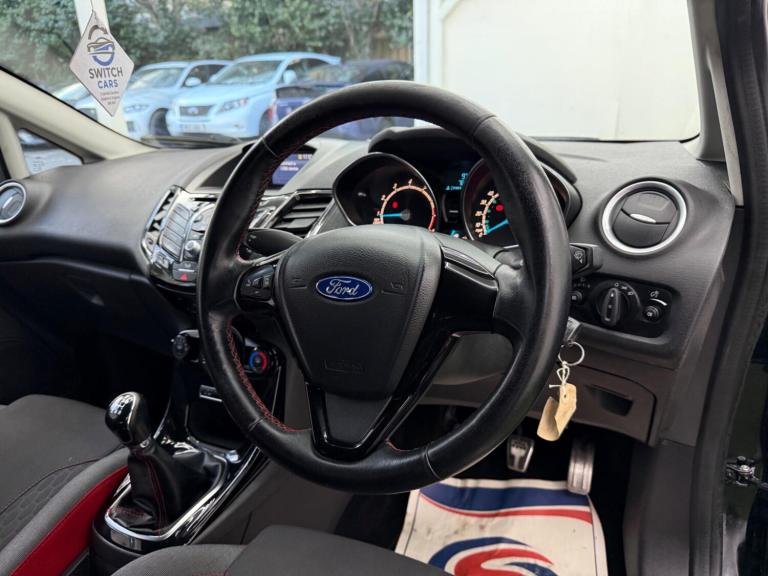 Low finance options available 2 Former Keeper 2 KeysMOT EXP 03/27 1.0 EcoBoost Turbo 5-Speed Manual Bluetooth with Voice ControlUSB & AUX Ford SYNC DAB Radio Air Conditioning Heated Front Windscreen Sports Suspension Full Zetec S Body Styling Kit Large Rear Spoiler LED Daytime Running Lights Front Fog Lights Electric Windows Heated Electric Mirrors 17” 8-Spoke Alloy Wheels Sports Seats Leather Steering Wheel & Gear Knob ISOFIX 60/40 Split Rear Seats Trip Computer Hill Start Assist ESP, ABS, EBD Tyre Pressure Monitoring Euro 6Petrol ULEZ Compliant Clean, Sporty & Fun Fiesta ZetecThis 2015 Ford Fiesta Zetec S is a remarkable find, boasting exceptionally low mileage for its age with only 55,158 miles covered and having had just two owners. This popular hatchback is equipped with a responsive 1.0 litre petrol engine and benefits from a Euro 6 emission class. Inside, you'll appreciate the convenience of manual air conditioning and Bluetooth hands free phone connectivity, making every journey more comfortable and connected.At Switch Cars we strive on delivering exceptional customer service and a seamless car-buying experience. Whether you're looking to part-exchange, explore finance options, or simply browse our handpicked selection, our knowledgeable team is here to help.-Every vehicle is HPI clear and thoroughly inspected-Minimum 6 months MOT-Up to 36 months warranty options-12 months road tax available upon request- Nationwide delivery available-Drive away insurance available-All major debit cards acceptedWe encourage you to contact us directly to confirm exact specifications, as vehicle details may vary. Thank you