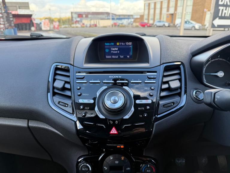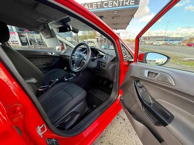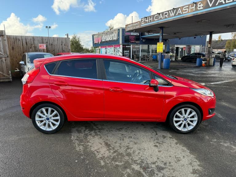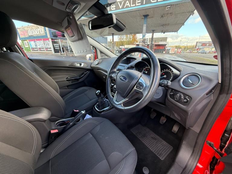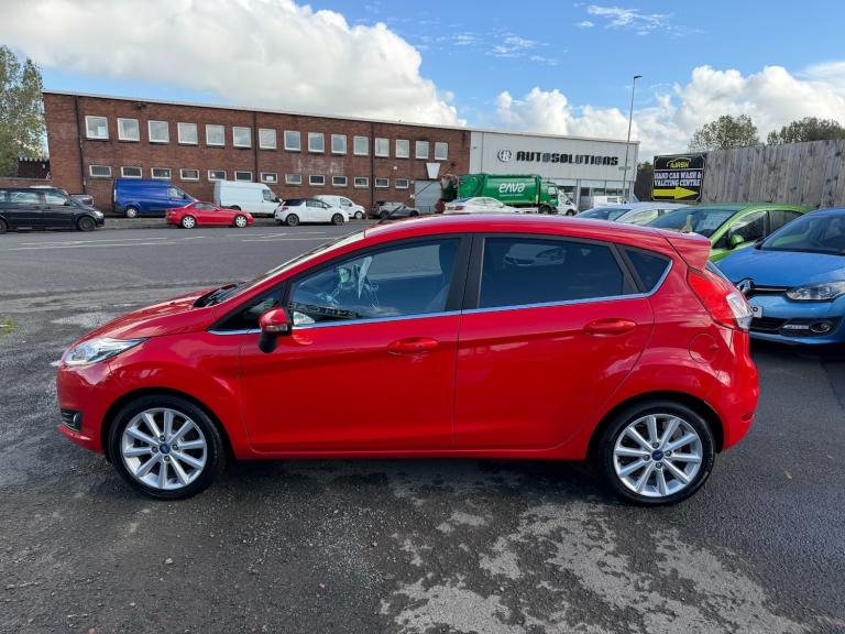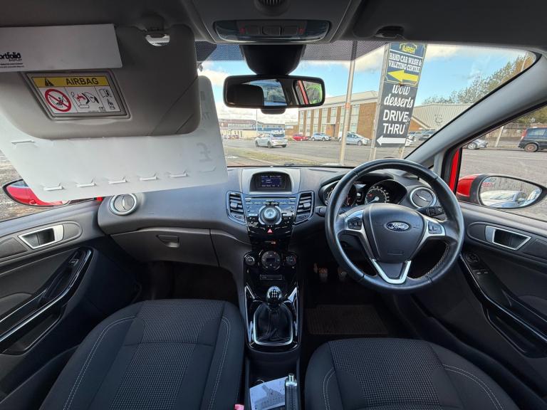 For sale is this stylish and efficient 2015 Ford Fiesta 1.0T EcoBoost Titanium Euro 6 (s/s) 5dr, finished in stunning Red and priced at £5,695 with only 41,495 miles. This well-maintained hatchback combines refined design, excellent fuel economy, and impressive technology, making it a perfect choice for new drivers or anyone seeking a reliable and economical daily car. With ULEZ compliance, £20 annual road tax, and full service history, it delivers exceptional value and peace of mind.Under the bonnet, the Fiesta features Fords award-winning 1.0-litre EcoBoost turbocharged petrol engine, paired with a smooth 5-speed manual gearbox. This engine provides the perfect balance of performance and economy, offering a responsive yet efficient drive ideal for both city and motorway use.The Titanium specification adds an impressive list of premium features as standard. The exterior design is sleek and elegant, with chrome detailing, LED daytime running lights, and 16-inch alloy wheels enhancing its modern look. Inside, the cabin is refined and comfortable, featuring keyless entry and push-button start, automatic climate control, and ambient interior lighting for a touch of sophistication. The Sony infotainment system includes DAB radio, Bluetooth connectivity, USB input, and voice control, ensuring a connected and enjoyable driving experience.Additional features include cruise control, auto headlights and wipers, electric folding mirrors, multi-function steering wheel, and rear parking sensors, all designed to make every journey easier and more comfortable. Safety is equally well covered with multiple airbags, traction control, ABS, ISOFIX mounting points, and emergency brake assist, giving you full confidence on the road.This car has had just 1 previous owner and comes with full service history, showing clear evidence of careful ownership and consistent maintenance. The Titanium trim ensures a high specification throughout, providing comfort, practicality, and efficiency in one elegant package.As with all vehicles from JDM Glasgow Motors, this Fiesta comes complete with a 6-month Momentum Mechanical Warranty, 12 months AA Breakdown Cover, and a new 12-month MOT for complete peace of mind.Available now at JDM Glasgow Motors, 243 Glasgow Road, Glasgow, G73 1SU.