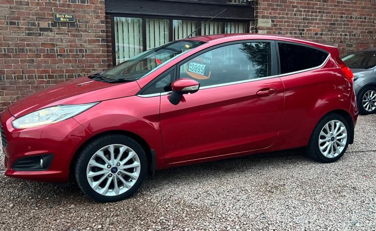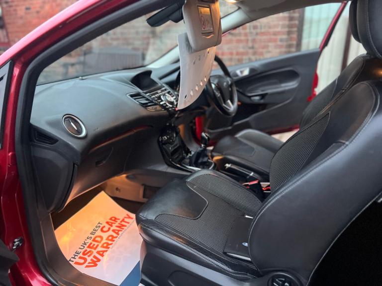 *2015 (DT65 LME) ONLY 2 OWNERS FROM NEW HIGH SPEC TITANIUM X MODEL * FORD FIESTA 1.0 ZETEC ECOBOOST TITANIUM X 3 DOOR HATCHBACK * ECONOMICAL 1.0 ECOBOOST PETROL ENGINE* LOW EMISSIONS SO ONLY £35 TAX * 5 SPEED MANUAL GEARBOX * FORD HANDBOOKS & SERVICE BOOK HISTORY * 2 X KEYS * WELL MAINTAINED WITH SERVICE HISTORY * GREAT COLOUR METALLIC ""RED"" PAINTWORK *FRONT & REAR PARKING SENSORS * REVERSING CAMERA * SATNAV * CRUISE CONTROL * POWER STEERING * HEATED FRONT SEATS * LEATHER INTERIOR * DAB RADIO & CD PLAYER* ELECTRIC WINDOWS* ELECTRIC MIRRORS* DUAL CONTROL CLIMATE CONTROL AIR-CONDITIONING* AUTO LIGHTS * CRUISE CONTROL * MULTIFUNCTIONAL STEERING WHEEL* HPI CLEAR NOT CAT C OR D* DRIVES SUPERB* ANY INSPECTION WELCOME INCLUDING AA OR RAC* IF INTERESTED PLEASE CALL 8AM TO 8PM THANKS********* WARRANTY'S CAN BE PURCHASED AT EXTRA COST'S IF REQUIRED ************************************** 3 MONTHS 6 MONTHS 12 MONTHS* REASONS TO BUY FROM US :We provide a personal and friendly service with a stress free approach.We believe in combining both quality and affordability in our cars.We are genuine and honest and have repeat business.All cars Hpi clear (unless stated).Save £100's if not £1000's off forecourt prices.We are an independent small family run business, priding ourselves on a professional, helpful and honest outlook.I have been in the industry for over 30 years and for years sold cars for a profession.We now get repeat business and have built a very good rapport with previous clients.All cars are test driven for around 50 miles or more and any mechanical issues are rectified.All cars sold with no known issues unless stated in the advert