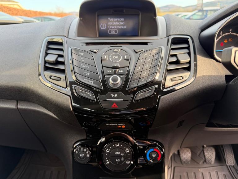 This 2015 Ford Fiesta 1.25 Zetec Hatchback with 49000 miles is the perfect compact car for city driving. With a petrol engine and manual transmission, this Euro 6 compliant vehicle is also ULEZ compliant, making it ideal for urban areas. SAT NAV With 5 seats and 5 doors, there's plenty of room for friends and family. The MOT is valid until 18/04/2026, giving you peace of mind for years to come. The car also comes with modern features such as a 12V power socket, AUX connection, Bluetooth hands-free phone system, emergency assistance, and a Ford AM-FM CD audio system, perfect for staying connected and entertained on the go. Whether you're navigating city streets or hitting the open road, this Ford Fiesta offers a reliable and convenient drive. Features Include: , 12v power socket - front, aux connection, bluetooth hands-free phone, emergency assistance, ford am-fm cd audio system, ford dab with ford sync, ford sync, speakers - x6, usb connection, 15in alloy wheels - 5x2 spoke, body colour exterior mirrors, bumpers - front and rear - body colour, chrome belt line finisher, door handles - body colour, door mirrors - electrically operated and heated, electric windows - front with one touch lowering drivers, front lower grille insert and surround - black, front upper grille - chrome finish surround, front upper grille insert - chrome bars, heated front windscreen, locking wheel nuts, rear spoiler - body colour, tailgate handle - body colour with chrome finisher, tinted glass, tyre inflator kit, abs - anti-lock braking system, airbags - curtain, airbags - driver side knee, airbags - front passenger, airbags - head and thorax, airbags - passenger deactivation, brake warning lights - automatic flashing of brake lights under heavy braking, drivers airbag, eba - emergency brake assist, ebd - electronic brakeforce distribution, esp - electronic stability programme, emergency brake warning - automatic hazard warning lights, engine immobiliser, ford easy fuel capless refuelling system with misfuel inhibitor, hill start assist, ips - intelligent protection system, remote central locking, seats - isofix mounting brackets for child seats, traction control - tc, aesthetic lighting package, air conditioning - manual, centre console - with trinket tray - two cup holders, courtesy light - overhead with theatre-style dimming, courtesy lights with map reading lights, flow through centre console, front seatback map pockets - driver and passenger, gear knob - leather, gearshift