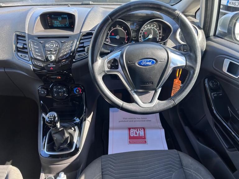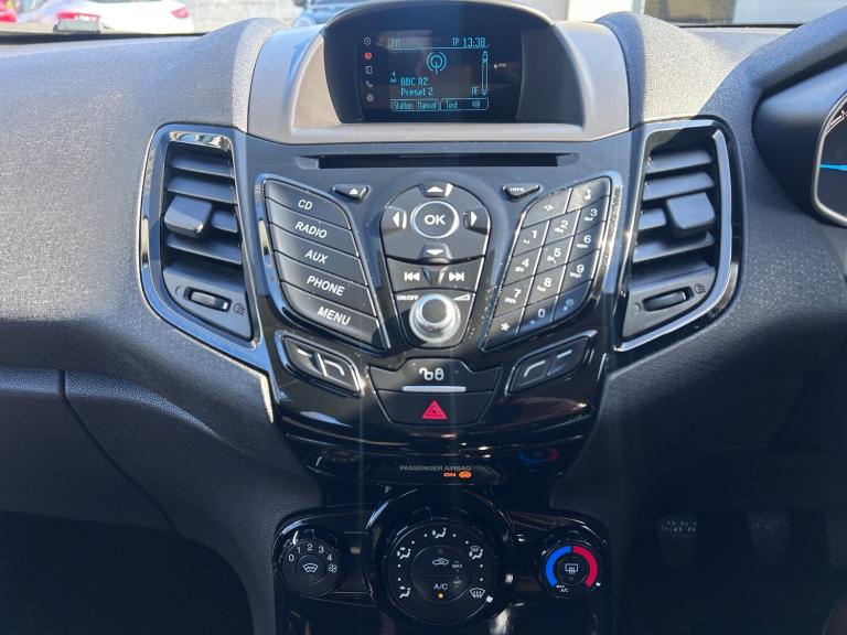 This 2015 Ford Fiesta 1.25 Zetec Hatchback with only 38000 miles on the clock is a reliable and fuel-efficient choice for those in the market for a city-friendly car. Powered by a Euro 6 compliant 1.25L petrol engine producing 82 ps, this 5-door hatchback comfortably seats 5 people and is ULEZ compliant, making it perfect for urban driving. Inside, it boasts modern features including a 12V power socket, AUX connection, Bluetooth hands-free phone system, and emergency assistance for added safety. The Ford AM-FM CD audio system ensures an enjoyable drive, and its manual transmission adds to the engaging driving experience. With its practicality, efficiency, and low mileage, this Fiesta is an excellent option for those seeking a versatile and affordable vehicle. Features Include: , 12v power socket - front, aux connection, bluetooth hands-free phone, emergency assistance, ford am-fm cd audio system, ford dab with ford sync, ford sync, speakers - x6, usb connection, 15in alloy wheels - 5x2 spoke, body colour exterior mirrors, bumpers - front and rear - body colour, chrome belt line finisher, door handles - body colour, door mirrors - electrically operated and heated, electric windows - front with one touch lowering drivers, front lower grille insert and surround - black, front upper grille - chrome finish surround, front upper grille insert - chrome bars, heated front windscreen, locking wheel nuts, rear spoiler - body colour, tailgate handle - body colour with chrome finisher, tinted glass, tyre inflator kit, abs - anti-lock braking system, airbags - curtain, airbags - driver side knee, airbags - front passenger, airbags - head and thorax, airbags - passenger deactivation, brake warning lights - automatic flashing of brake lights under heavy braking, drivers airbag, eba - emergency brake assist, ebd - electronic brakeforce distribution, esp - electronic stability programme, emergency brake warning - automatic hazard warning lights, engine immobiliser, ford easy fuel capless refuelling system with misfuel inhibitor, hill start assist, ips - intelligent protection system, remote central locking, seats - isofix mounting brackets for child seats, traction control - tc, aesthetic lighting package, air conditioning - manual, centre console - with trinket tray - two cup holders, courtesy light - overhead with theatre-style dimming, courtesy lights with map reading lights, flow through centre console, front seatback map pockets - driver and passenger, gear knob -