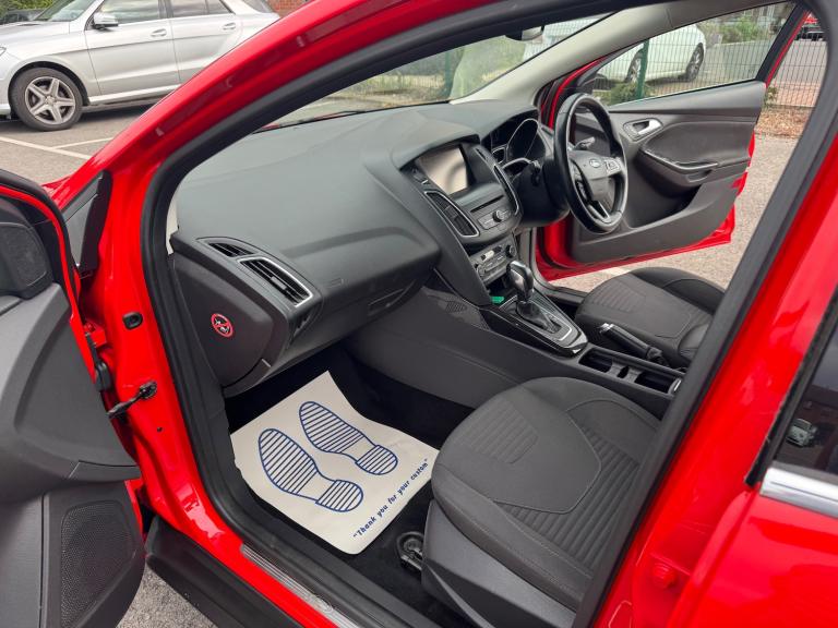 2015 Ford Focus 1.6 Titanium Powershift Estate - Full Service History, Low Mileage, ULEZ Compliant 6 Months AA Warranty Included The 2015 Ford Focus Titanium Powershift Estate in striking red is a stylish, practical, and well-equipped car that's ideal for families, commuters, and motorway drivers. With just 67,418 miles, automatic transmission, and full service history, this Focus combines reliability, comfort, and advanced technology in one attractive package. ** Performance and Economy ** Powered by a 1.6 petrol engine paired with the smooth Powershift automatic gearbox, the Focus delivers responsive performance with everyday efficiency. Its Eco Mode helps maximise fuel economy, while the estate body provides excellent practicality for longer journeys. Fully ULEZ compliant, it's perfect for city and motorway use alike. ** Features and Technology ** Highlights include SYNC 2 infotainment with 8'' colour touchscreen, DAB radio, Bluetooth with voice control, rear parking sensors, cruise control with speed limiter, automatic headlights and wipers, TFT cluster display, and USB/Aux connectivity. ** Comfort and Practicality ** Inside, the Focus Titanium features dual-zone electronic climate control, sports-style front seats, a 60/40 split-folding rear bench, centre armrest with storage, leather steering wheel, height-adjustable seats, and silver roof rails for added versatility. The spacious estate boot makes it an excellent choice for families and travellers. ** Safety and Security ** Equipped with Ford's Active City Stop, ABS with EBD, ESP with traction control, hill start assist, tyre pressure monitoring, front, side, and curtain airbags, ISOFIX child seat mounts, and a Thatcham Cat.1 alarm with remote central double locking, this Focus offers peace of mind on every journey. ** Ownership and Condition ** First registered on 22/01/2015, this car has had just 1 former keeper and comes with full service history, showing it has been well looked after. A full MOT will be supplied upon sale, ensuring it's ready for the road with confidence. ** Included with Purchase ** A 6 month AA warranty included, which can be extended 12 month free AA breakdown cover £75 gift card toward your next MOT and service Drive away insurance available (T&Cs apply) Finance options available ** Next Steps ** This Ford Focus Titanium Estate is a fantastic choice and ready to drive away today. To book a test drive, request a