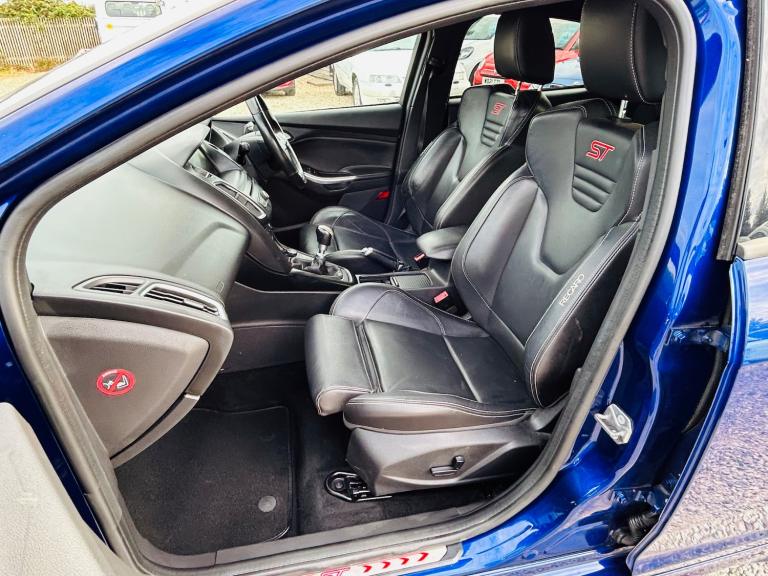 Ford Focus ST3 TDCI 185 Euro 6 - Has covered 83k with great history - Will be supplied with 12 months Mot - Low tax model - Great spec - Finance Available - Part Exchange - Extended Warranties Available Features Include: , 12v power socket - front, 8in touchscreen colour display, aux connection, bluetooth handsfree phone system, centre console - additional 12v power socket, colour tft instrument cluster display, emergency assistance, ford am-fm cd audio system, ford dab audio system, ford sync2, rear auxiliary power socket - 12v, speakers - x6, usb connection, 18in alloy wheels - 10 spoke - rock metallic, body colour bumpers, body colour exterior mirrors, brake calipers painted red, door handles - body colour, door mirrors with integrated indicators, electric windows - front and rear with one touch, electric windows - global opening-closing, heated front windscreen, locking wheel nuts, mini steel spare wheel, power fold door mirrors, st full body styling kit, unique st rear spoiler, abs - anti-lock braking system, airbag - front passenger, airbags - curtain, airbags - curtain rear, airbags - side impact, anti-submarining seat bases, city pack, drivers airbag, eba - emergency brake assist, ebd - electronic brakeforce distribution, esp - electronic stability programme, emergency brake warning, enhance tvc - torque vectoring control, ford easy-fuel capless refuelling system, front seat belts with pre-tensioners, hill start assist, ips - intelligent protection system, isofix - child seat attachments, keyfree system, pedals - collapsible, steering column - collapsible, thatcham category 1 alarm, traction control - tc, air conditioning - dual zone electronic automatic temperature control, automatic dimming rear view mirror, automatic rain sensing wipers, floor mats - carpet - front and rear, handbrake cover - leather, heated driver and passenger seats, height-adjustable mounts on front seat belts, keyless start, mykey, pollen filter, premium centre console, premium centre console - sliding armrest, recaro sculpted 3-seater rear bench seat, st front door scuff plates - illuminated, seat - driver electric height adjustment, seats - 60-40 rear split back, seats - front 8-way power adjustment, seats - front recaro sports, steering column - rake and reach adjustment, steering wheel - audio controls, steering wheel - st leather with red st logo, unique st leather gearshift knob, bi-xenon headlights, headlights - adaptive, headlights - automatic, headlights