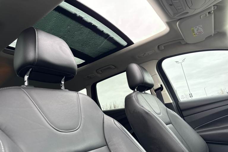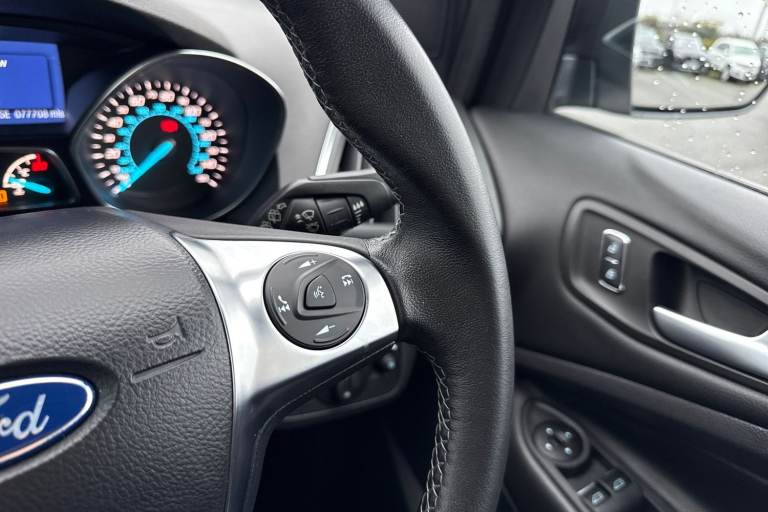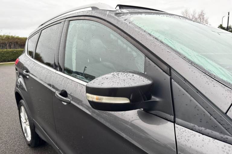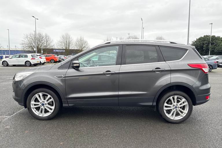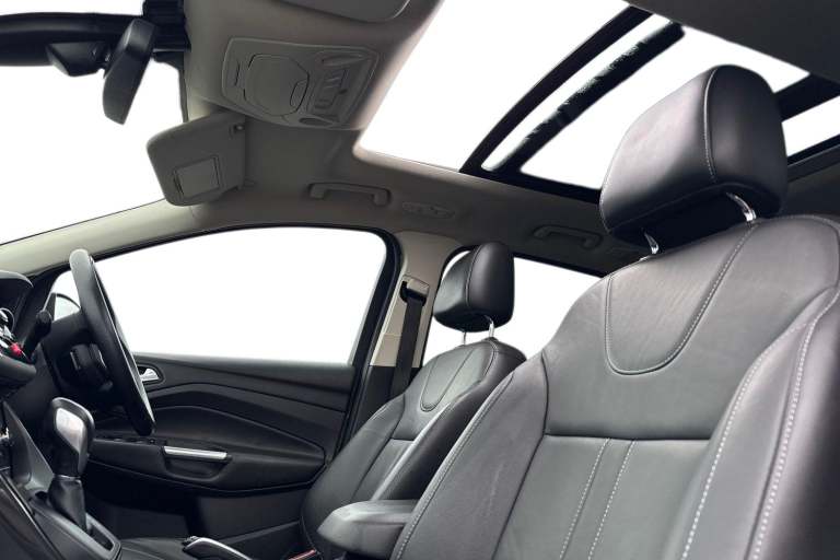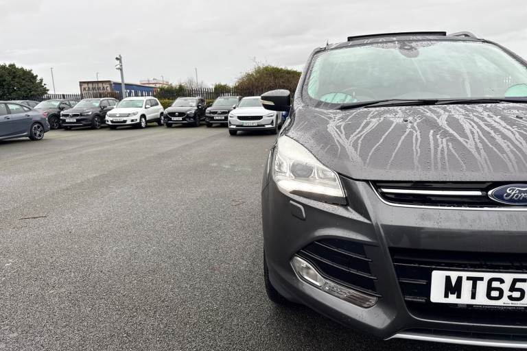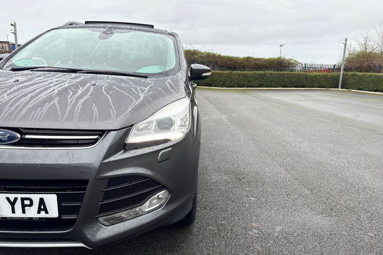 Available now at Motor Match Chester is this Ford Kuga 2.0 TDCi Titanium X Powershift , which comes in a stunning Magnetic Grey metallic paintwork! This vehicle boasts a fantastic service history, with services completed at 13021, 23655, 28251, 37643, 43153, 48482, 61451 and 74439 miles, and sits on stunning 18"" alloy wheels for a fantastic look! The vehicles autimatic headlights and daytime running lights ensure youre seen at all hours of the day, and the rear parking sensors, alongside the rear view camera are perfect for alerting you of any obstructions when manoeuvring. The boot boasts a powered tailgate and provides a great amount of storage space, with the option of folding the rear seats for any larger items, and the interior is finished in a part leather upholstery for a stylish feel. Youll find Isofix mounting points on both outer rear seats, and the front seats can be heated for excellent comfort during the winter months! The panoramic sunroof floods the vehicle with natural light and the multifunctional steering wheel has mounted controls for audio and telephone functions, as well as the cruise control and speed limiter, which is perfect for motorway driving. In terms of entertainment, you have the choice of the DAB, AM and FM radio, or you can connect devices via Bluetooth, AUX and USB to listen to your own music. You can use the Bluetooth function to connect your mobile device to make and take phone calls whilst out on the go and the satellite navigation a...