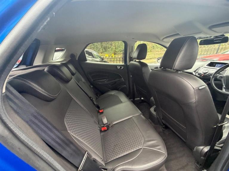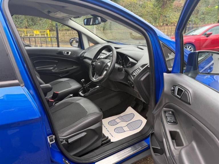 This 2016 Ford EcoSport T Titanium S presents an exceptional find with its remarkably low mileage of just 29,000 miles, a testament to its careful ownership by only two previous keepers. This Euro 6 compliant 1.0 litre petrol model, in its desirable Titanium S trim, offers a refined driving experience. Convenience is enhanced by the KeyFree System for keyless entry, automatic headlights that illuminate when needed, and Electronic Automatic Temperature Control for effortless climate management. The EcoSport Titanium S stands out with its impressive fuel economy, achieving a highlight of 52 miles per gallon, which is significantly better than many other vehicles in its class. Furthermore, its low CO2 emissions contribute to a more environmentally conscious drive. This combination of excellent fuel efficiency, low emissions, and desirable features makes this particular Ford EcoSport a compelling choice for those seeking a practical and economical compact SUV.. 12V Power Socket - Front,17in Alloy Wheels - 7x2 Spoke Black,ABS - Anti-lock Braking System,Airbag - Front Passenger,Airbags - Curtain,Airbags - Passenger Deactivation,Airbags - Side Impact,Automatic Dimming Rear View Mirror,Automatic Rain Sensing Wipers,Black Contrast Roof,Cruise Control,Door Handle Integrated in Rear Light,Door Mirrors - Black Housing,Door Mirrors - Electrically Operated,Drivers Airbag,EATC - Electronic Automatic Temperature Control - Climate Control,EBA - Emergency Brake Assist,EBD - Electronic Brakeforce Distribution,ESP - Electronic Stability Programme,Electric Windows - Front and Rear,Floor Mats - Carpet - Front and Rear,Ford Easy-Fuel Capless Refuelling System,Front Fog Lights with Integrated Daytime Running Lights and Chrome Surrounds,Front Grille - Chrome Finish,Front Seatback Map Pockets - Driver and Passenger,Glovebox - Cooled,HLA - Hill Launch Assist,Headlights - Automatic,KeyFree System,LED Signature Lights,Leather Steering Wheel with Remote Audio Controls,Pollen Filter,Power Assisted Steering,Rake Adjustable Rear Seat,Rake and Reach Steering Adjustable,Rear Privacy Glass,Scuff Plates - Silver,Seats - 60-40 Rear Split Back,Seats - Drivers Lumbar Support,Seats - Drivers Manual Height and Tilt Adjustment,Silver Lower-Bumper Lip - Front and Rear,Sony CD Radio with DAB and Ford Sync,Sports Suspension,Stowage Pockets - Front Seatback,Thatcham Category 1 Alarm,Traction Control - TC,Trip Computer,Tyre Pressure Monitoring System
