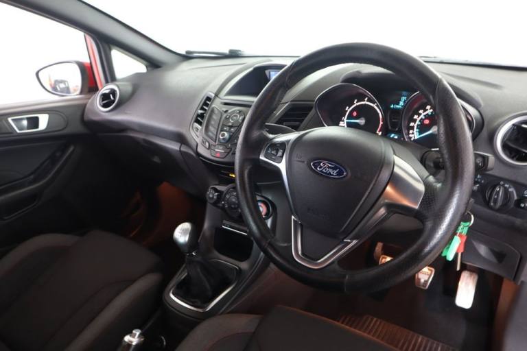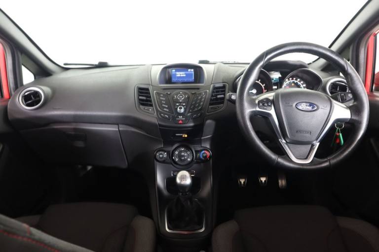 Trade Car Sales presents this stunning FORD FIESTA 1.0T EcoBoost ST-Line Hatchback 3dr Petrol Manual Euro 6 (s/s) (100 ps) in Red that comes with: Ford Sound System, Bluetooth, Cloth Seats, USB, FM Radio, Climate Control, Alloys. The desirable car has done 73443 miles and comes with service history and 30 Day warranty and nationwide delivery are available. For added peace of mind our checks are carried out by a fully trained technical team. Part exchanges are more than welcome and if required can be used as a deposit. We have great finance options that can be applied today! Just visit our website [Website URL removed] Subject to acceptance with Moto Novo Finance. Call us on [Phone number removed] and speak to our team or reserve this car for only £99 deposit via our website. Trade Car Sales has over a decade of valuable experience selling sport performance, luxury, 4x4 cars. In our showroom in Bury, Greater Manchester and on our website ([Website URL removed]) we have over 50 cars in stock. We are open 9am-6pm Monday-Friday, Saturday and Sunday 9am-5pm Call us on 07894432512.17in Alloy Wheels - 8-Spoke - Rock Metallic Finish, Bumpers - Front and Rear Body Colour, Centre Console, Courtesy Light - Front with Map Reading Lights, Courtesy Light - Rear, Door Handles - Body Colour, Door Mirrors - Electrically-operated and Heated - Integrated Side Indicators - Body Colour Housing, Double Locking, Dress Up Kit - Full, Drivers Seat Lumbar Support, EPAS - Electric Power Assisted Steering, ESP - Electronic Stability Programme, EcoSelect Button, Electrically-Operated Front Windows with One Touch, Engine Immobiliser - Passive Anti-theft System, First Aid Kit and Warning Traingle Storage, Footwell Lights - Driver and Passenger, Ford DAB with Ford SYNC, Ford Easy Fuel Capless Refuelling System with Misfuel Inhibitor, Front Fog Lights - Black Bezel Rings, Front Lower Grille Insert - Mesh Black, Front Seats - Sports Style, Front Upper Grille Insert - Black Mesh, Full Body Styling Kit, Gear Shift Indicator, Gearshift Knob - Leather, Glovebox - Illuminated, Halogen Projector Headlights with Silver Surrounds and LED Daytime Running Lights, Headlights - Courtesy Delay, Headlining - Woven - Dark, High-Mounted Rear Brake Light, Hill Start Assist, IPS - Intelligent Protection System, Interior Door Lever - Chrome Finish, Loadspace Compartment Light, Loadspace Floor Carpet, Locking Wheel Nuts, Manual Air Conditioning, MyKey, Pedals - Sports, Perimeter Alarm, Pollen Filter, Power Point Socket - 12 V, Quickclear Heated Windscreen, Rear Lights - LED Night Signature, Remote Central Locking with Two Flip Keys, Removable Package Tray, ST Full Body Styling Kit, Seats - Drivers 4-Way Manual Adjustment, Sports Suspension, Steering Wheel - ST-Line 3-Spoke Leather-Trimmed, Suspension - Front Stabiliser Bar, Tailgate Handle - Body Colour, Tailgate Wash-Wipe, Tinted Glass, Trip Computer, Tyre Pressure Monitoring System, Wipers - Front Variable Intermittent