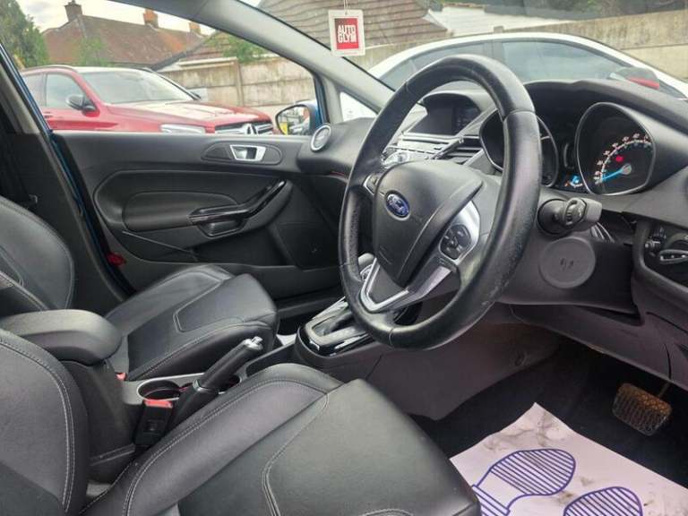 Power Point Socket - 12 V, Sony CD Radio with DAB and Ford Sync, Cruise Control, EcoSelect Button, Parking Sensor - Rear, Rear View Camera, Trip Computer, Tyre Pressure Monitoring System, 16in Alloy Wheels - Multi-spoke, Bumpers - Front and Rear Body Colour, Door Handles - Body Colour, Door Mirrors - Electrically-Operated and Heated - Power-Foldable with Integrated Side Indicators - Body Colour Housings and Puddle Lights, Electric Windows - Front and Rear - One Touch - Global Opening and Closing, Front Lower Grille Insert - Black, Front Upper Grille - Chrome Finish Surround, Front Upper Grille Insert - Chrome bars, Locking Wheel Nuts, Quickclear Heated Windscreen, Rear Privacy Glass, Rear Spoiler - Body Colour, Tailgate Handle - Body Colour with Chrome Finisher, Tyre Repair Kit, Automatic Headlights - Rain Sensing Wipers - Auto Dimming Rear View Mirror, Front Fog Lights - Chrome Bezel Rings, Halogen Projector Headlights with Silver Surrounds and LED Daytime Running Lights, Headlights - Courtesy Delay, High-Mounted Rear Brake Light, Rear Lights - LED Night Signature, Ambient Lighting, Centre Console, Convenience Pack, Courtesy Light - Front with Map Reading Lights, Courtesy Light - Overhead with Theatre-Style Dimming, Courtesy Light - Rear, Drivers Seat Lumbar Support, EATC - Electronic Automatic Temperature Control - Climate Control, Floor Mats - Front and Rear - Velour, Footwell Lights - Driver and Passenger, Gearshift Knob - Leather, Glovebox - Illuminated, Heated Driver and Passenger Seats, Interior Door Lever - Chrome Finish, Leather-Trimmed Handbrake, Loadspace Compartment Light, Loadspace Floor Carpet, MyKey, Pollen Filter, Rear Centre Head Restraint, Removable Package Tray, Seats - Drivers 4-Way Manual Adjustment, Steering Column - Rake and Reach Adjustment, Steering Wheel - 3 Spoke - Leather Trimmed, Threshold Plates - Front Stainless Steel, EPAS - Electric Power Assisted Steering, Suspension - Front Stabiliser Bar, Double Locking, Emergency Brake Warning - Automatic Hazard Warning Lights, Engine Immobiliser - Passive Anti-theft System, ESP - Electronic Stability Programme, First Aid Kit and Warning Traingle Storage, Ford Easy Fuel Capless Refuelling System with Misfuel Inhibitor, Hill Start Assist, IPS - Intelligent Protection System, KeyFree System, Perimeter Alarm, Remote Central Locking with Two Key Fobs, Tailgate Wash-Wipe.Here we have a Ford Fiesta 1.0 Petrol Automatic finished in candy blue having done 43k miles from new with Service History including the last service done less than 50 miles ago and a long MOT until November 2026 with no advisories.Comes with full 3 month warranty and free 12 month AA breakdown cover. The interior and exterior of the car have been looked after very well, it starts and drives perfectly with no issues at all. Being the top of the range Titanium X spec this vehicle benefits from Reverse Camera, Front & Rear Parking Sensors, Navigation, Heated Front Seats, Leather Seats, Bluetooth, Automatic Climate Control and Aux/USB capability. The car will be sold with extendable Warranty. We also offer Part Exchange / Delivery / Finance, HPI report available on request. Please call us on 0121 798 2352 for further enquiries. ===============================================================================Why not read our AutoTrader reviews to see what our customers think about their experience here and why they choose to buy from us, =============================================================================== Please contact our sales department for the latest finance offers on this vehicle. We have a dedicated team researching our used car prices daily to make sure we offer the best value cars in the market. ===============================================================================To arrange a personal viewing of this amazing car, or if you would like a tailored video to be emailed to you then please contact us. ===============================================================================Please give us a call for directions. Our postcode for Sat Nav direction is B25 8EL • Finance subject to status, T&C's apply. -