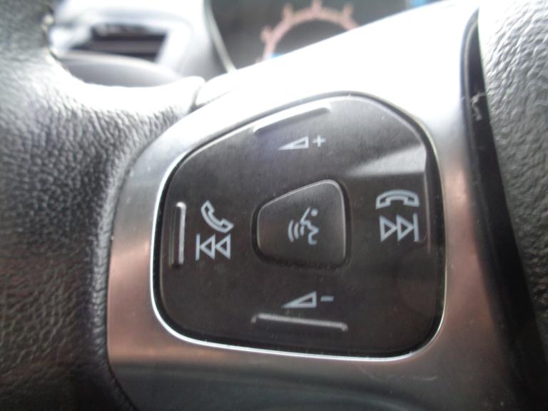 This equipment listed below is a standard description and may differ from the exact detail for the vehicle displayed.Comfort / Convenience 3 spoke leather steering wheel 60/40 split folding rear seat ABS+EBA Adjustable head restraints Body colour electric adjustable heated door mirrors Cloth upholstery Electric front windows/one touch facility Electric power steering ESP + traction control Front seat and rear pockets Hill start assist Leather trimmed handbrake handle Manual air conditioning Manual seat adjustment Pollen filter Quickclear heated windscreen Rake/reach adjustable steering wheel Rear wiper SYNC Emergency Assistance Tinted glass Trip computerEntertainment 6 speakers Auxiliary input socket DAB radio/CD and Ford SYNC Bluetooth connection with voice control Steering wheel mounted controls USB connectionExterior / Styling Body colour door handles Body colour tailgate handle Chrome beltline trim Chrome surround for front fog lights Courtesy headlamp delay Front fog lights LED daytime running lights Upper front grille chrome surroundSafety / Security 3 point seatbelts on all rear seats Curtain airbags Driver and passenger airbags Drivers knee airbag Front passenger airbag deactivation Front side airbags Immobiliser MyKey system Remote central locking Tyre pressure monitoring system