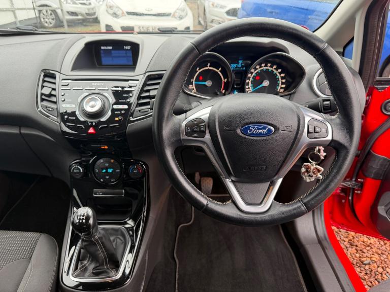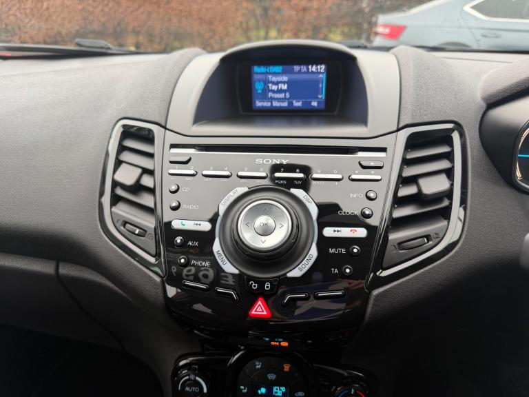 This 2016 Ford Fiesta 1.5 TDCi ECOnetic Titanium Hatchback has travelled 59000 miles SERVICE HISTORY £20 TAX and is powered by a diesel engine, making it a great choice for fuel efficiency. With 5 seats and 5 doors, this Hatchback provides plenty of space for passengers and cargo. The MOT is valid until 12/02/2027, offering peace of mind to the new owner. Notably, this vehicle is ULEZ compliant, making it suitable for driving in low emission zones. The car comes with features such as a 4.2in TFT Display, Bluetooth Hands-free Phone, Emergency Assistance, and Ford SYNC, providing convenience and safety for the driver. With its sleek design and reliable performance, this Ford Fiesta is a fantastic option for anyone in need of a practical and stylish vehicle. Features Include: , 12v power socket - front, 4.2in tft display, bluetooth hands-free phone, emergency assistance, ford sync, sony cd-radio player-mp3 compatibility, sony dab digital radio, speakers - x8, usb and aux connection for external music devices, 14in alloy wheels - 5x2 spoke, body colour exterior mirrors, bumpers - front and rear - body colour, chrome belt line finisher, door handles - body colour, door mirrors - power-foldable with puddle lights, door mirrors with integrated indicators, electric windows - front with one touch opening and closing, front lower grille insert - black, front upper grille - chrome finish surround, front upper grille insert - chrome bars, heated front windscreen, locking wheel nuts, rear privacy glass, rear spoiler - body colour, spare wheel - 14in steel, tailgate handle - body colour with chrome finisher, abs - anti-lock braking system, airbags - curtain, airbags - driver side knee, airbags - front passenger, airbags - front side, airbags - passenger deactivation, double locking, drivers airbag, eba - emergency brake assist, ebd - electronic brakeforce distribution, esp - electronic stability programme, emergency brake warning - automatic hazard warning lights, engine immobiliser - passive anti-theft system, ford easy fuel capless refuelling system with misfuel inhibitor, hill start assist, ips - intelligent protection system, perimeter anti theft alarm, rear wash - wipe, remote central locking, seats - isofix mounting brackets for child seats, traction control - tc, ambient lighting, armrest - centre console, automatic dimming rear view mirror, automatic rain sensing wipers, centre console - with trinket tray - 2x cup holders - illuminated, courtesy light -