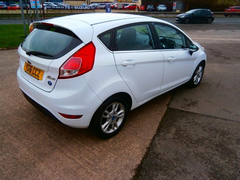 JUST ARRIVED 2016 FORD FIESTA 1.5 TDCI ZETEC,5 DOOR HATCHBACK DIESEL CAR.88,000 MILES,SERVICE HISTORY.NEW MOT ON PURCHASE.£20 A YEAR ROAD TAX.THIS CAR IS IN SUPERB CONDITION THROUGHOUT.NO FAULTS.ANY TRIAL OR INSPECTION WELCOME.AIR CON,ALLOY WHEELS,BLUETOOTH.RADIO/CD PLAYER.FINANCE ARRANGED.FULL DEALER FACILITIES.BUY WITH COMPLETE CONFIDENCE,FAMILY RUN BUSINESS.ESTABLISHED AT THIS SITE FOR OVER THITY FIVE YEARS.FOR MORE INFO PLEASE CALL 01656 647779 OR [Phone number removed] AFTER HOURS.. 12V Power Socket - Front,15in Alloy Wheels - 5x2 Spoke,ABS - Anti-lock Braking System,Air Conditioning - Manual,Airbags - Curtain,Airbags - Driver Side Knee,Airbags - Front Passenger,Airbags - Front Side,Airbags - Passenger Deactivation,Ambient Lighting,Bluetooth Hands-free Phone,Body Colour Exterior Mirrors,Bumpers - Front and Rear - Body Colour,Centre Console - with Trinket Tray - Two Cup Holders,Chrome Belt Line Finisher,Courtesy Light - Front with Map Reading Lights,Courtesy Light - Overhead with Theatre-Style Dimming,Courtesy Light - Rear,Door Handles - Body Colour,Door Mirrors - Electrically Operated and Heated,Door Mirrors with Integrated Indicators,Double Locking,Drivers Airbag,EBA - Emergency Brake Assist,EBD - Electronic Brakeforce Distribution,ECOmode,EPAS - Electric Power Assisted Steering,ESP - Electronic Stability Programme,Electric Windows - Front with One Touch Opening and Closing,Emergency Assistance,Emergency Brake Warning - Automatic Hazard Warning Lights,Engine Immobiliser - Passive Anti-theft System,Footwell Lights - Driver and Passenger,Ford AM-FM CD Audio System,Ford DAB with Ford SYNC,Ford Easy Fuel Capless Refuelling System with Misfuel Inhibitor,Ford SYNC,Front Fog Lights - Chrome Bezel Rings,Front Lower Grille Insert - Black,Front Seat - Passengers Manual Fore-Aft Adjustment,Front Seatback Map Pockets - Driver and Passenger,Front Upper Grille - Chrome Finish Surround,Front Upper Grille Insert - Chrome bars,Gear Knob - Leather,Gear Shift Indicator,Glovebox - Illuminated,Head Restraints - 2-way Adjustment,Headlights - Courtesy Delay,Headlights - Halogen Projector with Silver Bezel,Headliner - Woven,Heated Front Windscreen,High-Mounted Rear Brake Light,Hill Start Assist,IPS - Intelligent Protection System,Interior Door Lever - Chrome Finish,LED Daytime Running Lights,Leather-Trimmed Handbrake,Loadspace Compartment Light,Loadspace Floor Carpet,Locking Wheel Nuts,MyKey,Pollen Filter,Rake and Reach Steering Adjustable,Rear Seats Back - Carpet,Rear Spoiler - Body Colour,Rear Wash - Wipe,Remote Central Locking,Removable Package Tray,Seat Bolster - Metal Grey Stitching,Seats - 60-40 Split Folding Back and Fixed Cushion,Seats - Drivers Manual Height and Fore-Aft Adjustment,Seats - Front Comfort Style,Seats - ISOFIX Mounting Brackets for Child Seats,Speakers - x6,Steering Wheel - 3 Spoke - Leather Trimmed,Steering Wheel - Multifunction,Suspension - Front Stabiliser Bar,Tailgate Handle - Body Colour,Tinted Glass,Traction Control - TC,Trip Computer,Tyre Pressure Monitoring System,Tyre Repair Kit,USB and AUX Connection for External Music Devices,Voice Control - Audio,Wipers - Front Variable Intermittent