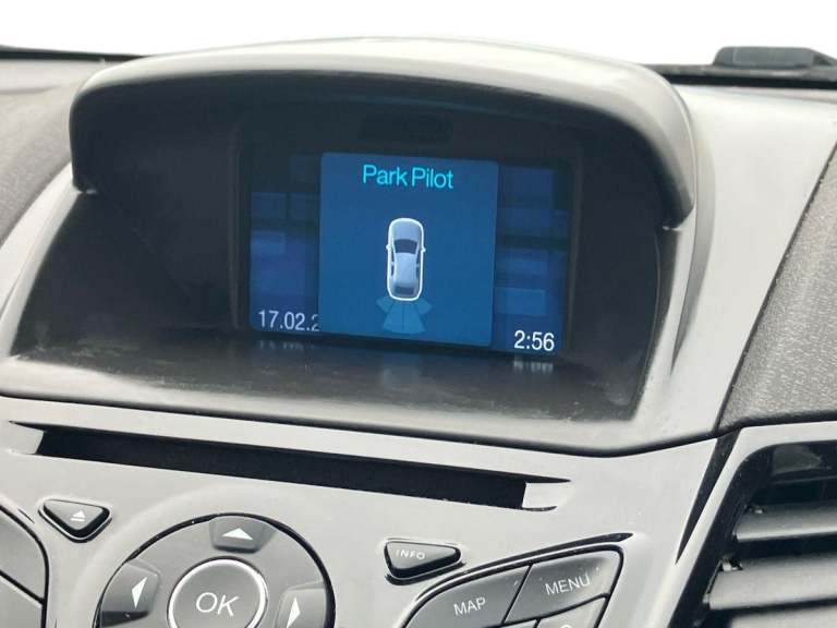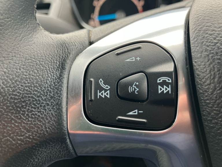 ..Electric power steering, SYNC Emergency Assistance, Trip computer, 6 speakers, Auxiliary input socket, DAB radio/CD and Ford SYNC Bluetooth connection with voice control, Steering wheel mounted controls, USB connection, Body colour door handles, Body colour electric adjustable heated door mirrors, Body colour tailgate handle, Chrome beltline trim, Chrome surround for front fog lights, Courtesy headlamp delay, Electric front windows/one touch facility, Front fog lights, LED daytime running lights, Quickclear heated windscreen, Rear wiper, Tinted glass, Upper front grille chrome surround, 3 spoke leather steering wheel, 60/40 split folding rear seat, Adjustable head restraints, Ambient lighting, Boot carpet, Cloth upholstery, Footwell illumination, Front map reading lights, Front seat and rear pockets, Illuminated glovebox, Leather trimmed handbrake handle, Load area light, Manual air conditioning, Manual seat adjustment, Pollen filter, Rake/reach adjustable steering wheel, 3 point seatbelts on all rear seats, ABS+EBA, Curtain airbags, Driver and passenger airbags, Drivers knee airbag, ESP + traction control, Front passenger airbag deactivation, Front side airbags, Hill start assist, Tyre pressure monitoring system, Immobiliser, MyKey system, Remote central locking, 15'' 5x2 spoke alloy wheels