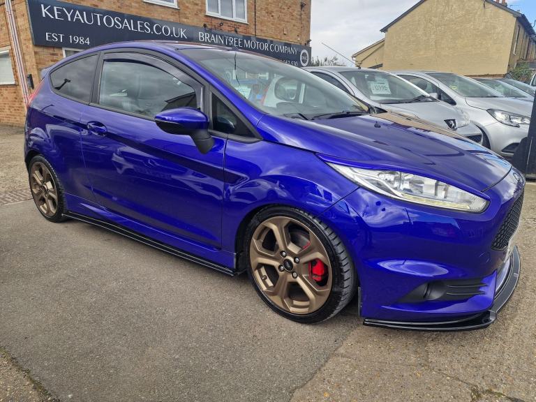 Ford Fiesta 1.6T EcoBoost ST 3 Mountune Hatchback 3dr Petrol Manual Euro 6 182 ps Spirit Blue Comprehensive documented service history carried out at 3957, 7341, 11773, 24127, 28781, 34951, 40718, 51376 and 61062 Miles. This stunning car will have a fresh service by an independent garage before collection. Exterior Experience the perfect blend of sporty elegance with the Ford Fiesta ST 3 in striking Spirit Blue. This compact hatchback captures attention with its aggressive styling, including a specially designed front bumper, eye catching alloy wheels, and the iconic ST badging. The aerodynamic silhouette not only enhances its aesthetic appeal but also improves performance and fuel efficiency. With premium LED daytime running lights and a bold rear diffuser, this Fiesta is designed to stand out on any road. Interior Step inside the Fiesta ST 3, where high quality materials and meticulous craftsmanship create a comfortable driving environment. The interior boasts supportive Recaro sports seats, ensuring excellent ergonomics during spirited drives. Key features include a leather wrapped steering wheel, climate control, and ambient lighting, all aimed at elevating your driving experience. Ample boot space and rear seat versatility make this hatchback practical for everyday use, whether for city commutes or weekend adventures. Performance Powered by the potent 1.6 litre EcoBoost engine, producing an exhilarating 182 PS, this Fiesta guarantees an exciting driving experience. The manual gearbox delivers precise gear changes, allowing you to fully engage with the road. With impressive acceleration and dynamic handling capabilities, this hatchback is perfect for those who crave both performance and agility. The ST 3 s advanced suspension ensures superior control and ride comfort, making every journey a pleasure. Technology Equipped with cutting edge technology, the Ford Fiesta ST 3 features an intuitive infotainment system, complete with a touchscreen display, Bluetooth connectivity, and advanced sound system for your listening pleasure. Safety is paramount, with multiple airbags, stability control, and advanced braking systems. Value Proposition Perfect for driving enthusiasts and those seeking a dynamic urban car, the Ford Fiesta ST 3 Mountune combines performance, style, and practicality without compromise. At Key Auto Sales in Braintree, Essex, this exceptional vehicle represents outstanding value and is ready