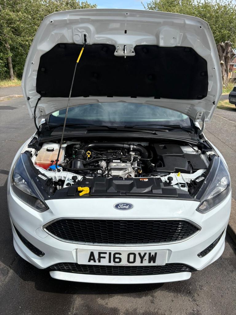 Ford focus 1.0 zetec s petrol many 16 2016 previously owned since 2020 6 speed 5 doors frozen white colour coded bumpers mirrors rear spoiler body kit 69000 miles service history pdi 8x service stamps power steering fogs push button start stop abs air con heated front screen remote central locking electric windows electric mirrors remote touch screen sync cd voice command phone Bluetooth usb dab stereo auto headlights 17 alloys with locking wheel nut rear parking sensors airbags rev counter £20 a year road tax 2x remote keys 12 months mot NATIONWIDE DELIVERY AVAILABLE
