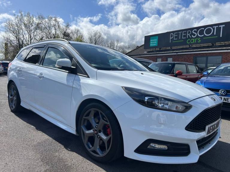 Stunning, high specification Ford Focus ST-3 Estate with Recaro seats, Satellite navigation, Rear view camera, Heated front seats, Bluetooth audio and much more. Cared for and maintained to a very high standard with an 11 stamp service history, including Timing belt and water pump replacement. Fantastic fuel economy figures and only £20 per year road tax.This ST-3 Estate has been independently inspected by the AA for your added peace of mind. Visit [Website URL removed], to reserve this car and apply for finance. Peter Scott Cars is an Award Winning family run dealership with over 30 years experience in the sourcing and supply of high quality vehicles..18in Alloy Wheels - 10 Spoke - Rock Metallic, Alarm - Thatcham Category 1 with Volume Sensing and Perimeter, Automatic Dimming Rear View Mirror, Automatic On-Off Headlights includes Automatic Wipers - Headlight Courtesy Delay, Auxiliary Power Socket - Loadspace Compartment, Bi-Xenon Headlights with Adaptive Lighting, Black Roof Rails, Brake Warning Lights - Automatic Flashing of Brake Lights Under Heavy Braking, Centre Console, City Pack, Colour TFT Instrument Cluster Display, Cruise Control with Active Speed Limiter, DEATC - Dual-Zone Electronic Automatic Temperature Control, Door Mirrors - Body Colour Housing - Heated Electrically Operated Power Fold - Integrated Side Indicator Puddle Lights, Drivers and Passengers 8-Way Power Adjustable Seats, Easy Stow Tonneau Cover, Electronic Stability Programme - ESP - with Traction Control and Emergency Brake Assist - EBA, Enhanced Torque Vectoring Control, EPAS - Electric Power Assisted Steering, Floor Mats - Front and Rear - Velour, Ford Easy-Fuel Capless Refuelling System, Ford Eco Mode - Driver Information System, Ford KeyFree System, Front Fog Lights, Front Lower Grille - High Gloss Black, Front Suspension - Independent with MacPherson Struts and Anti-Roll Bar, Frozen White, Interior Door Lever - Chrome Finish, IPS - Intelligent Protection System, Leather-Trimmed Handbrake, LED Ambient Courtesy Lighting, Locking Wheel Nuts, MyKey, Parking Distance Sensors - Rear, Quickclear Heated Front Windscreen with Heated Washer Jets, Rear Diffuser with Central Dual Exhausts, Rear Lights - LED, Rear Seat - 60-40 Split Back and Cushion, Rear Suspension - Independent Control Blade Multi-Link System and Anti-Roll Bar, Rear View Camera, Recaro Sculpted 3-Seater Rear Bench Seat, Red Painted Brake Calipers, Remote Central-Double Locking, Scuff Plates - Front Aluminium Finish with ST logo - Illuminated, Seats - Heated Front Recaro Sports, Spare Wheel - Mini Steel, ST Design Full Bodystyling Kit, Steering Column - Rake and Reach Adjustment, Steering Wheel - Flat Bottom 3-Spoke Leather Trimmed with ST Logo, Suspension - Sports, SYNC3 with 8in Touchscreen DAB Audio System, Trip Computer, Tyre Pressure Monitoring System, Unique ST Leather Gearshift Knob, Unique ST Rear Spoiler, Windows - Electrically Operated Front and Rear with One Touch Lowering-Closing and Global Opening-Closing