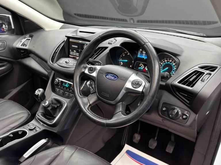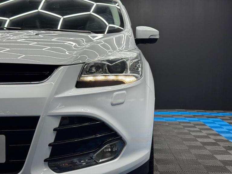 Here at Motor Gurus we are delighted to offer a Ford Kuga 2.0 TDCi Titanium X Sport AWD. This vehicle is in immaculate condition inside and out. This specific vehicle is finished in a GLOSS WHITE and is contrasted by a BLACK LEATHER interior. This vehicle comes included with: REAR PARKING SENSORS, PRIVACY GLASS, ELECTRIC TAILGATE, AUTOMATIC HEADLIGHTS, SLIDING GLASS PANORAMIC ROOF, DRIVER ELECTRIC SEAT, FRONT HEATED SEATS, CRUISE CONTROL, TWIN CUPHOLDERS, CLIMATE CONTROL, DAB RADIO, BLUETOOTH AUDIO, TELEPHONE CONNECTIVITY, HILL START ASSIST, TYRE PRESSURE MONITORING AND MUCH MORE! Our Ford Kuga 2.0 TDCi Titanium X Sport AWD has come to us with 2 KEYS and will also come provided with a 12 MONTH MOT as well as a FRESH OIL SERVICE before it leaves our premises (OTR).