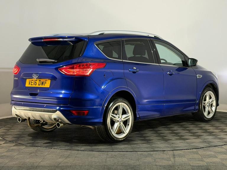 2016 Ford Kuga Titanium X Sport 2.0 Diesel TDCi AWD SUV in Stunning Blue - 2 previous owners, full service history, fully loaded, electric sun-roof + panoramic rear roof, electric tailgate, electric tow bar, reversing camera, sat-nav, full black leather with heated electric seats, 180 BHP, EURO 6 ULEZ compliant.