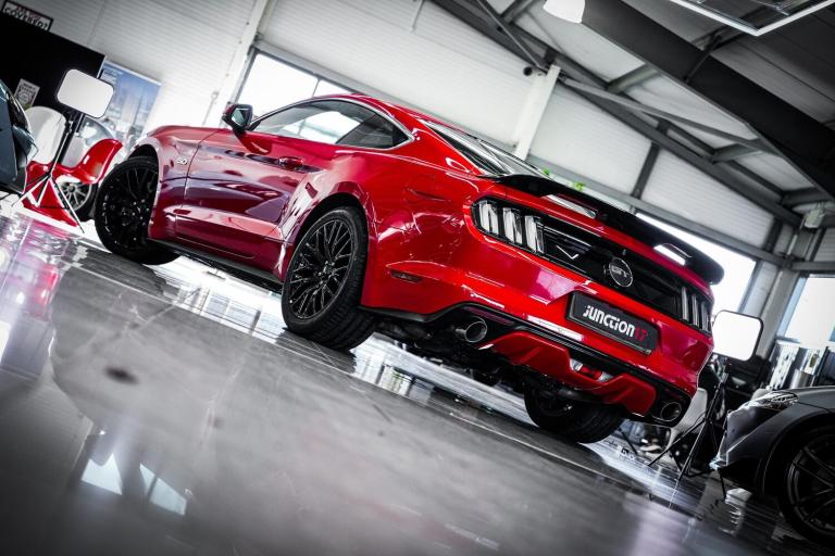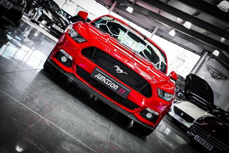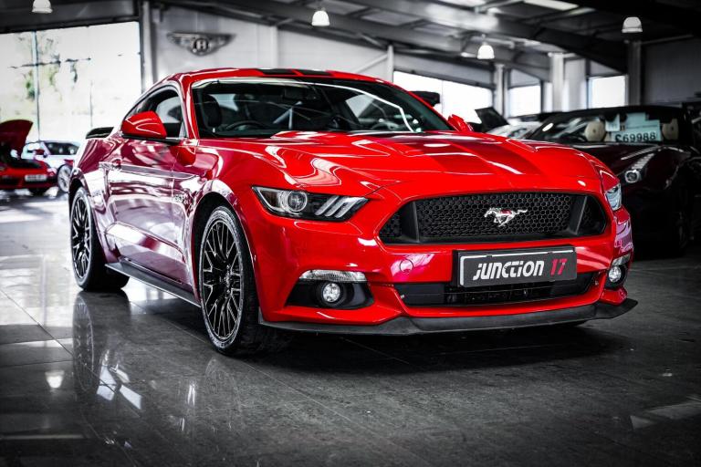 *CLICK - BUY - COLLECT* FINANCE AVAILABLE! HPI CLEAR! Junction 17 Cars now have to offer a stunning Ford Mustang 5.0 V8 GT Manual 2dr Fastback.. Low mileage example with outstanding service history (10x records present).. Finished in Race Red with Black body stripes and Ebony leather upholstery.. Desirable specification, with upgraded MBRP sports exhaust system.. Heated/cooled front seats.. Shaker premium audio.. Reverse camera.. 20'' Multi-spoke alloy wheels, and more.*WE WILL BEAT ANY CAR VALUATION SITE FOR YOUR PART EXCHANGE* Junction 17 Cars (Runner Up at the Motor Trader Independent Dealer Awards 2019 nominated for Car Supermarket of the Year Award) is a unique family run business with over 7 millions worth of stock currently split over our purpose-built showroom in Yaxley, Peterborough and our new showrooms in Grantham and Rugby. Our vehicles can also be reserved with a 99 refundable holding deposit to ensure that they are professionally prepared/valeted for your viewing pleasure. Competitive HP and PCP packages are available with decision/approval available within 15 minutes. We also offer comprehensive warranties over a variety of different terms as well as Williams Ceramic Coating, Flexfuel Engine Carbon Cleaning and more. **NATIONWIDE DELIVERY AVAILABLE** Payment : maximum 500 card payment balance by bank transfer