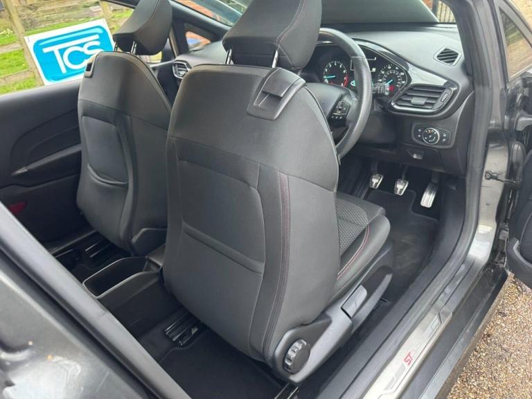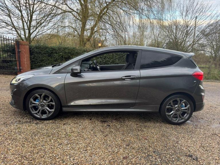 Low mileage FORD Fiesta ST-Line Turbo 1.0L 3 door hatchback 6 speed manual in Magnetic Grey (PN4) with Ebony interior (3JY), Featuring; Exclusive pack (Navigation / Privacy glass / Auto headlamps), Air conditioning; Cruise control & speed limiter; Lane departure & assist; FORD SYNC3 media; DAB; BT streaming; 7 loud speakers; Sports seats & St wheel; Magnetic Grey 7 spoke alloys; Blue brake calipers; Heated front windscreen; Keyless starting; Thatcham 1 alarm; Ford carpet mats, fantastic condition throughout!