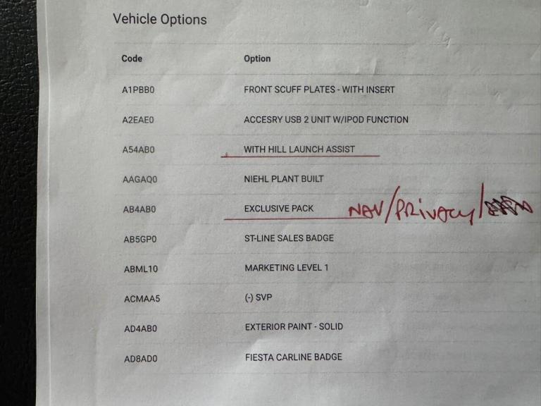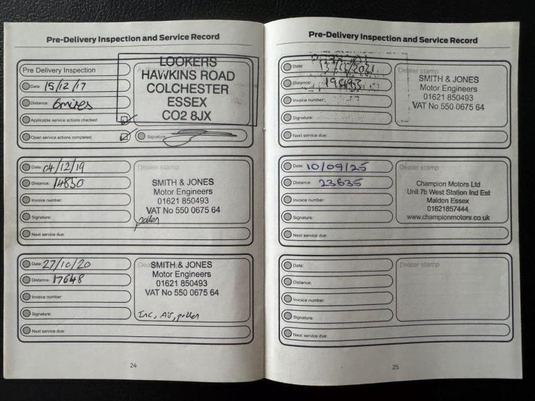 HPI & Experian clearance; One previous owner; Ford owners book pack; Stamped service booklet; Documented service history; both remote keys; Premium Michelin Pilot Sport 4 tyres all round; New wetbelt installed 10/25 at 23,700 miles; MOT expires 09/26 (no advisories); MOT history documented; Road tax £195 or £17 by direct debit; Non smoker; No odours from family pets; Factory build sheet with detailed options; Tyre repair kit;