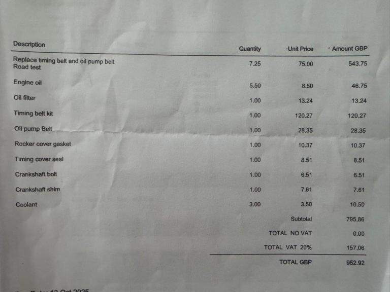 Wet Belt replaced 13/10/25 at 23,823 miles
