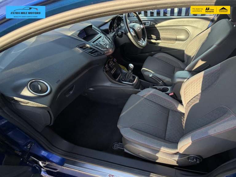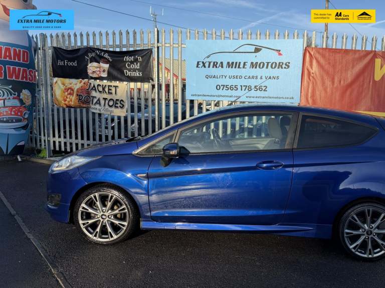 12 month mot , full service history plus just been service, excellent condition, 3 month warranty, px welcome Discover the perfect blend of style, performance, and practicality with the Ford Fiesta 1.0T EcoBoost ST-Line Hatchback. This striking blue hatchback, registered in 2017, boasts a mileage of just 49,000 miles and is powered by a 1.0-litre petrol engine that delivers an impressive 99 bhp. With a manual transmission and front-wheel drive, this vehicle accelerates from 0 to 60 mph in a swift 11.2 seconds, reaching a top speed of 122 mph. Not only does it offer exhilarating performance, but it also excels in fuel efficiency, achieving an outstanding 65.7 mpg, making it an economical choice for both city and motorway driving. Furthermore, it is ULEZ compliant and falls into a cheap insurance group, ensuring that your driving experience is both affordable and environmentally friendly. Enhance your driving experience with the optional Convenience Pack, which includes automatic headlights, rain-sensing wipers, and an auto-dimming rear-view mirror. These features work in harmony to provide you with a seamless driving experience, allowing you to focus on the road ahead without the distraction of manual adjustments. The automatic headlights ensure optimal visibility in varying light conditions, while the rain-sensing wipers activate as needed, keeping your windscreen clear and safe. The auto-dimming rear-view mirror reduces glare from vehicles behind you, enhancing your comfort during night-time driving. The Active City Stop feature is designed to enhance your urban driving experience by providing an additional layer of safety. This innovative technology helps to prevent low-speed collisions by automatically applying the brakes if it detects an imminent impact with a vehicle or obstacle in front of you. This added peace of mind is invaluable in busy city environments, allowing you to navigate through traffic with confidence. Rear privacy glass not only adds a touch of sophistication to the Ford Fiesta but also enhances the comfort of your passengers by reducing glare and heat from the sun. This feature provides an extra level of privacy, making your journeys more enjoyable for everyone on board. Additionally, the inclusion of a spare wheel ensures that you are well-prepared for any unforeseen circumstances on the road. The 14-inch steel spare wheel offers a reliable solution should you encounter a flat tyre, allowing you to continue your jo...