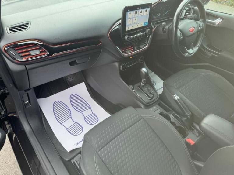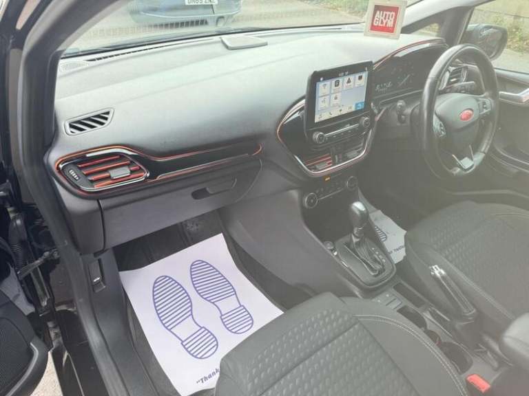 Parking Distance Sensors - Rear,Shadow Black,Magnetic,B and O PLAY In-Car Audio Premium Sound System,Driver Assistance Pack,Ford KeyFree System,Door Edge Protectors,Adjustable Boot Load Floor,Comfort Pack,17in Alloy Wheel Style Pack,Spare Wheel - 14in Steel,16in Alloy Wheel Style Pack, 4.2in TFT Instrument Cluster Screen, Ford Navigation System with Ford SYNC 3 - Apple CarPlay and Android Auto, Cruise Control, Driver Alert, Trip Computer, TSR - Traffic Sign Recognition, Tyre Pressure Monitoring System - TPMS, 16in Alloy Wheels - 10 Spoke, Chrome Belt Line Finisher, Chrome Upper Grille, Door Handles - Body Colour, Electrically-Operated Front Windows with One Touch Drivers, Front Bumper - Body Colour, Power Folding Door Mirrors with Puddle Lights, Quickclear Heated Windscreen, Rear Bumper - Body Coloured Upper and Self Colour Lower, Rear Privacy Glass, Rear Spoiler - Body Colour, Tyre Repair Kit, Front Fog Lamps with Cornering Lights, Headlights - Automatic High Beam Assist, Headlights - Automatic On-Off and Highbeam, Headlights - Halogen Projector with Black Bezel and Dedicated LED Daytime Running Lights, Rear Lights - LED Night Signature, 3-Spoke Leather Trimmed Steering Wheel with Audio Controls, Air Conditioning - Electronic Automatic Temperature Control - EATC, Automatic Rain Sensing Wipers and Auto-Dimming Rear View Mirror, Centre Console with Armrest and Illuminated Cupholders, Courtesy Light - Ambient LED Courtesy Lighting, Courtesy Light - Front Map Light and Rear - Overhead LED, Door Lever - Chrome Finish, Drivers Seat Lumbar Support, Floor Mats - Front and Rear - Velour, Gearshift Knob - Leather-Trimmed, Glovebox - Illuminated, Headliner - Woven, Leather-Trimmed Handbrake, Manual Drivers Seat Height Adjustment, MyKey, Overhead Console - Sunglasses Holder, Rear Fog Lamps, Rear Seat - 60-40 Split Back and Cushion, Seats - Front Comfort Style, Steering Column - Rake and Reach Adjustment, Warning Triangle Storage, Power Steering, ABS - Anti-lock Braking System, Airbags - Driver, Airbags - Front and Rear Side Curtain, Airbags - Front Passenger, Airbags - Side Curtain, Airbags - Side Impact, EBD - Electronic Brakeforce Distribution, Electronic Stability Control - ESC with Traction Control and Emergency Brake Assist - EBA, Electronic Stability Programme - ESP with Hill Start Assist, Ford Easy Fuel System, IPS - Intelligent Protection System, NCAP Pack, Remote Central Locking and Engine Immobiliser, Tailgate Wash-Wipe, Thatcham Alarm.Here we have a Ford Fiesta 1.0 Petrol Automatic finished in Black having done only 106k miles from new with Full Service History including the last service done less than 50 miles ago and comes with 12 months MOT with no advisories.Only has 2 Previous Owners and comes complete with a set of 2 Remote Keys.The interior and exterior of the car have been looked after very well, it starts and drives perfectly with no issues at all. Being the top of the range spec this vehicle benefits from Rear Parking Sensors, Apple CarPlay, Navigation, In car Wi-Fi, Bluetooth, Automatic Climate Control and Aux/USB capability. The car will be sold with extendable Warranty. We also offer Part Exchange / Delivery / Finance, HPI report available on request. Please call us on 0121 798 2352 for further enquiries. ===============================================================================Why not read our AutoTrader reviews to see what our customers think about their experience here and why they choose to buy from us, =============================================================================== Please contact our sales department for the latest finance offers on this vehicle. We have a dedicated team researching our used car prices daily to make sure we offer the best value cars in the market. ===============================================================================To arrange a personal viewing of this amazing car, or if you would like a tailored video to be emailed to you then please contact us. ===============================================================================Please give us a call for directions. Our postcode for Sat Nav direction is B25 8EL • Finance subject to status, T&C's apply. -