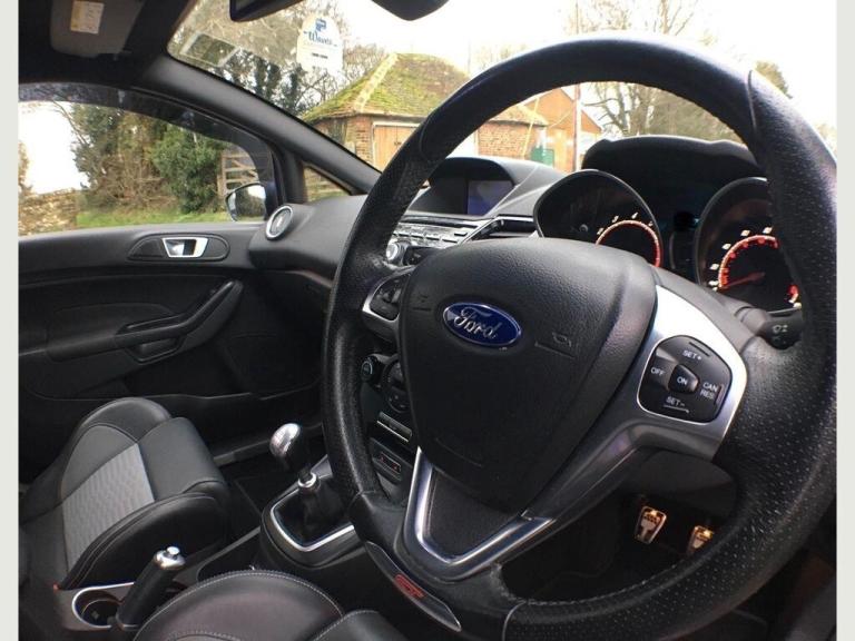 Welcome to PMC, This stunning Ford Fiesta ST-2 finished in Panther black is a truly exceptional example. It benefits from a full Ford main dealer service history and has been owned for the past five years by a Ford technician, ensuring it has been maintained and cared for to the very highest standard. A meticulous, enthusiast-owned vehicle that drives exactly as it should.Powered by the impressive 1.6L EcoBoost engine paired with a 6-speed manual gearbox, the ST-2 delivers the perfect balance of performance and everyday usability. The specification includes cruise control, ST sports seats, Bluetooth connectivity, air conditioning, alloy wheels and privacy glass, offering both comfort and practicality alongside its renowned hot hatch performance.The bodywork and interior are in excellent condition, reflecting the level of care this vehicle has received throughout its life. It is a superbly presented car that stands out from the rest.Supplied with 6 months warranty, fully inspected and prepared, Whether you buy from us or elsewhere, These vehicles at 10yrs or 100k which ever comes first require a Cambelt change. (Pls check with FORD) We recommended only FORD or Ford Specalist, if your vehicle is due one we recommend you book it within 24hrs of purchase or we can supply and fit parts by a specialist (costs apply to customer) please enquire. with nationwide delivery available. Clean MOT History report, A fantastic opportunity to own a carefully maintained Fiesta ST-2. Enquire today to arrange a viewing or reserve.